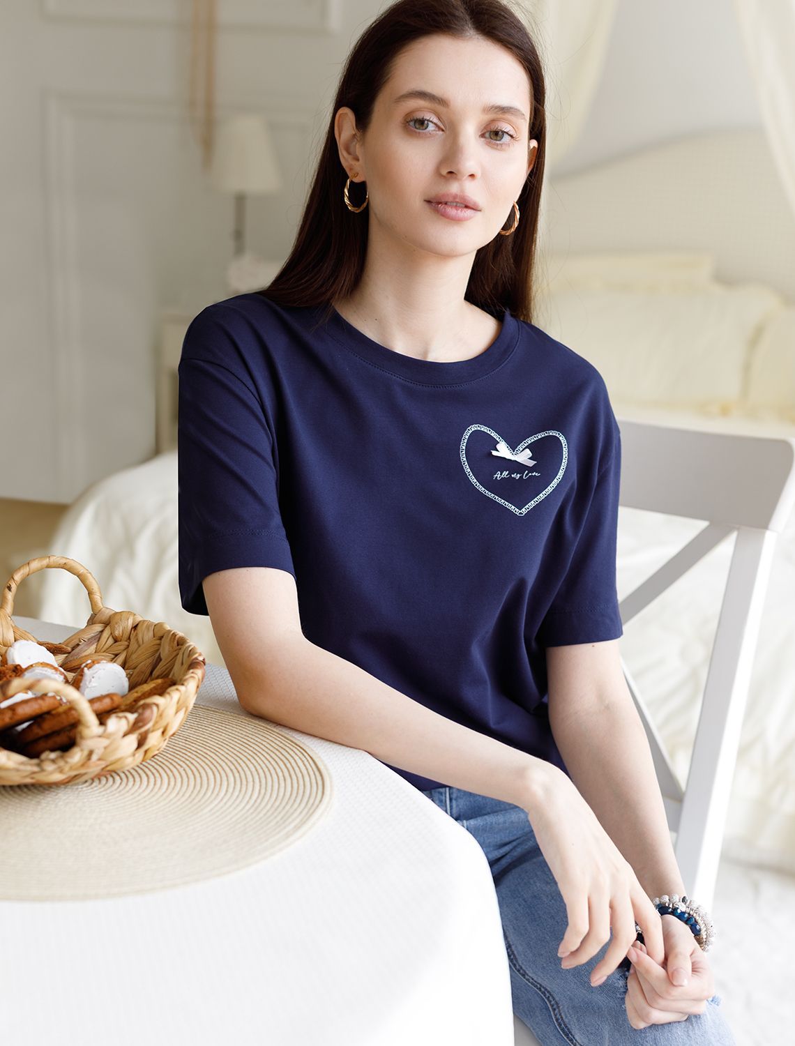 Особое внимание привлекает стильный принт в виде сердца с минималистичной надписью, перевод надписи: All my love - вся моя любовь. Принт выполнен красками с устойчивым покрытием, который добавляет изделию оригинальности и позволяет выразить индивидуальность.