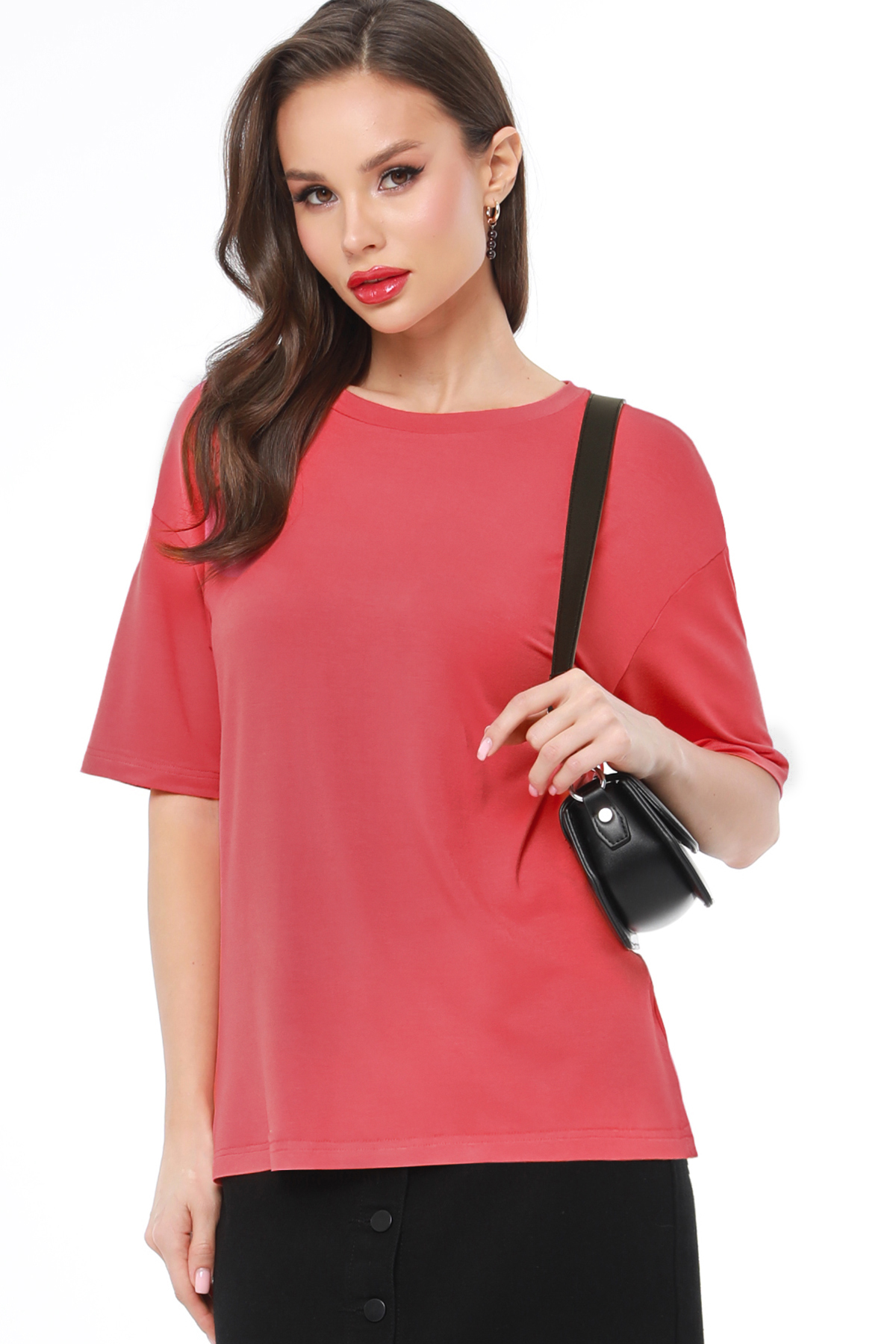 Базовая футболка свободного кроя — незаменимый элемент гардероба, благодаря которому можно составить стильные образы на все случаи жизни. Модель с коротким рукавом, округлым вырезом и небольшими разрезами по бокам подходит женщинам любой комплекции, дарит чувство легкости и комфорта. Благодаря трикотажному материалу средней плотности носить футболку можно навыпуск, в заправленном виде, а также стильно завязать спереди на узелок, чтобы создать акцент на талии. Модель выполнена из качественной вискозной ткани, которая хорошо пропускает воздух, приятна к телу, не просвечивает и не выцветает. Чтобы лаконичная футболка долго сохраняла первоначальный вид, рекомендуется стирать ее в деликатном режиме при температуре до 30 градусов без отжима и сушить на плечиках.