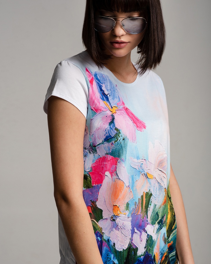 Футболка сделана из мягкого вискозного трикотажа — тонкого и приятного для тела материала, который способен украсить любой гардероб. Яркие сочные дизайнерские принты сохраняют свою стойкость в течение нескольких сезонов, они будут радовать вас даже после множества стирок.