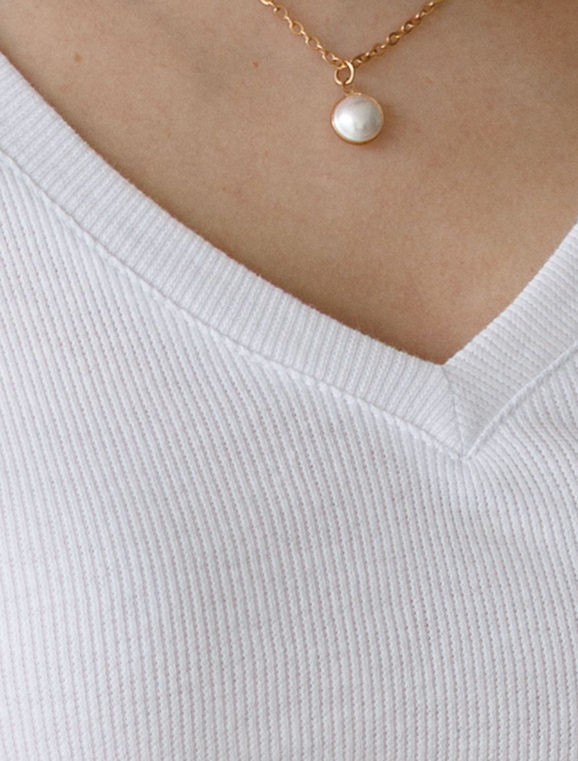 Футболка с V вырезом из эластичного трикотажа в рубчик