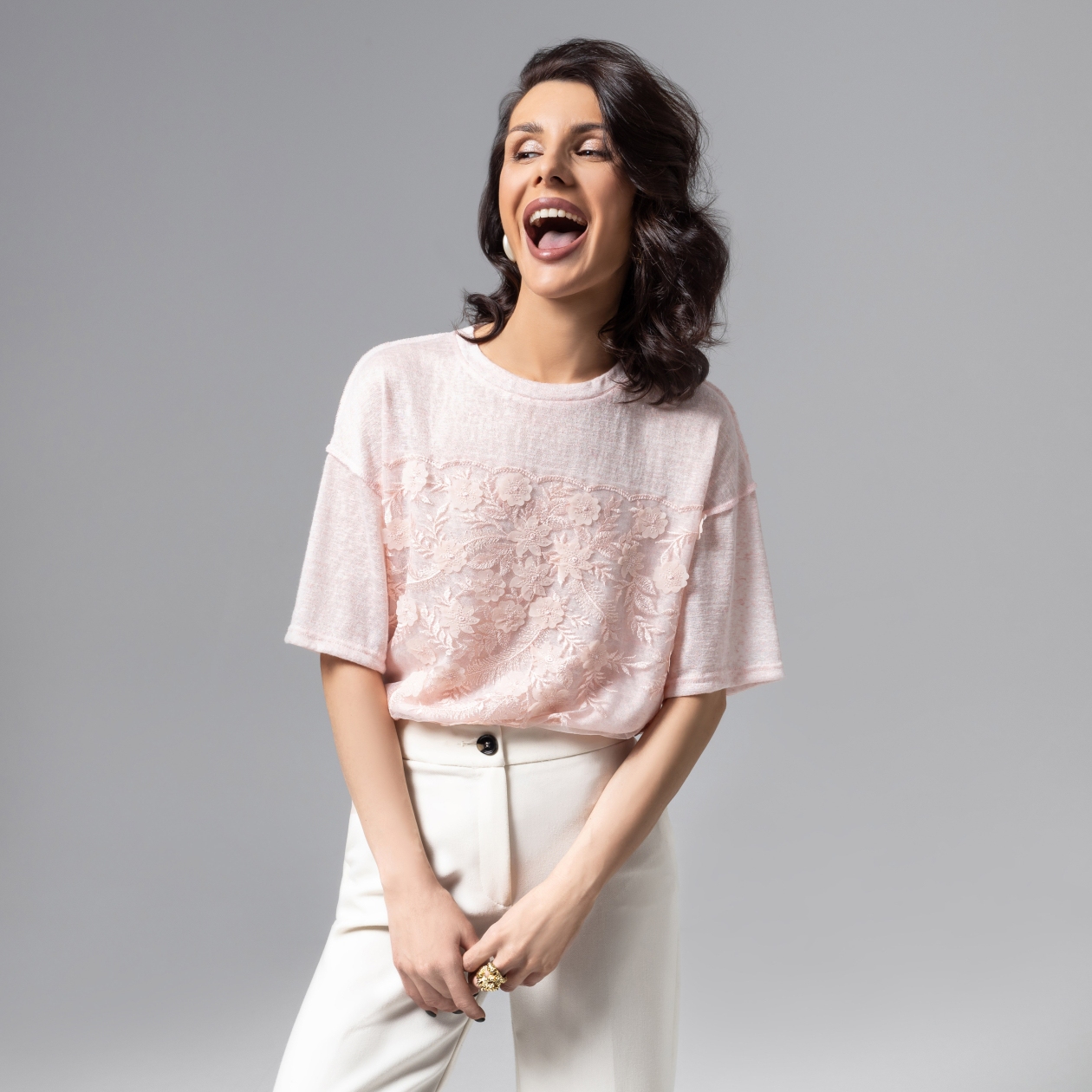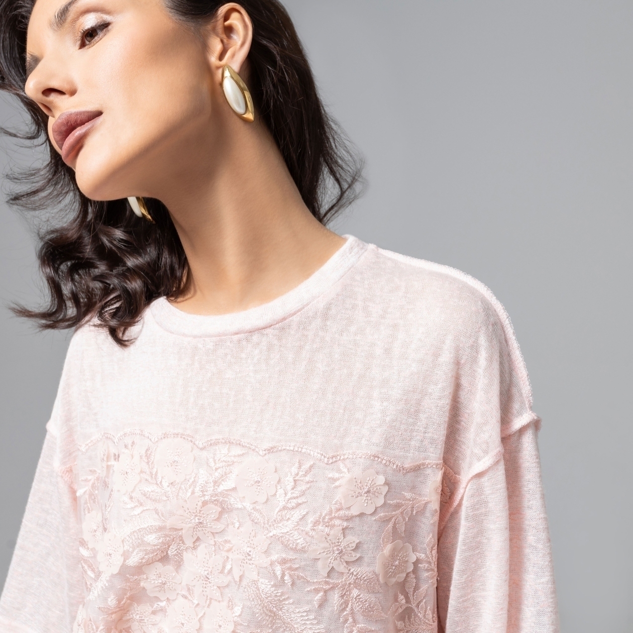 Изделие для тех, кто ценит индивидуальность. Сочетание объемного декора на вышивке премиального качества и свободного кроя делает футболку неповторимым модным экземпляром. Стиль casual здесь сливается с роскошью, создавая вау-эффект. Футболка удлиненная из мягкого материала. Спущена линия плеча. Вышивка на сетке вторым слоем. Акцентные швы наружу.