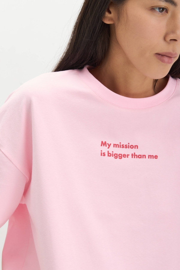 Футболка из трикотажного полотна с авторским принтом. Оверсайз модель. Рукав спущенный. Горловина обработана бейкой.
