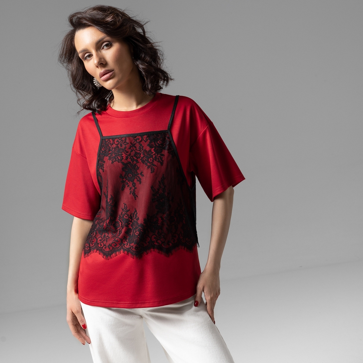 Футболка со съемным топом, Модный тандем (красный 2 в 1)