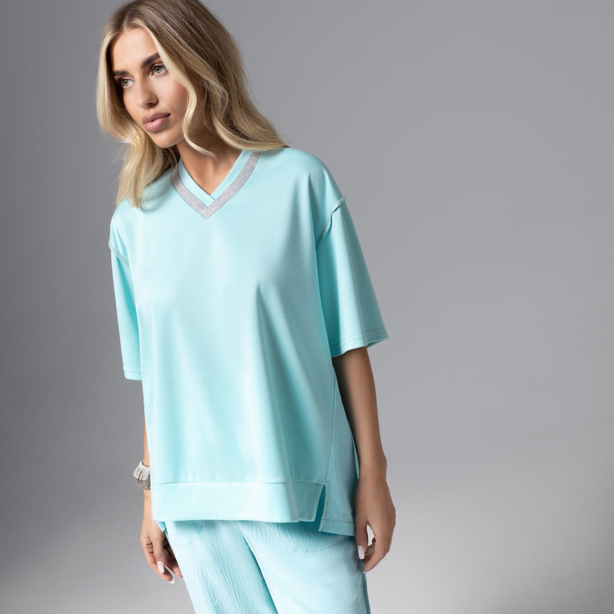 Адаптируйте моду под себя. Вы это заслуживаете. Футболка первоклассного кроя не в классическом цвете, а в цвете вашего настроения. Даже убежденные модные консерваторы не смогут не обратить внимание. Футболка свободного кроя. Акцентные наружние швы в безупречном исполнении. Спинка комбинированная с материалом в тон изделия. V-образный вырез ворота дополнен цветовым акцентом из трикотажа. Ярлык бренда с наружней части изделия по спинке.