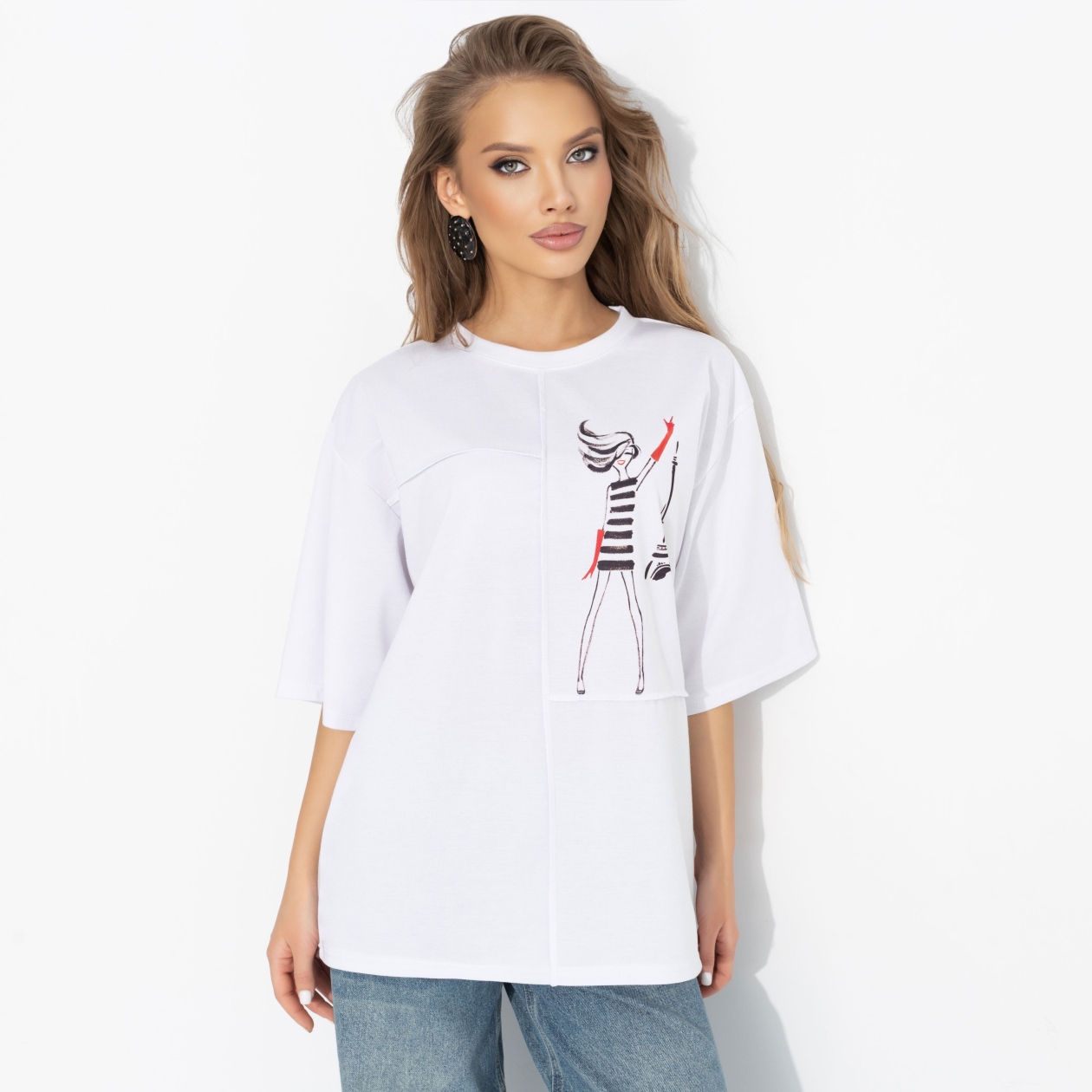 Люби меня по-французски! Ты словно парижанка: легкая небрежность, полоски, красный акцент и Эйфелева башня на заднем плане. Бунтарка и красотка – как Марион Котийяр. Французский стиль живёт в каждой детали этой футболки – утончённый, свободный и с намёком на флирт. Свободный силуэт, плотный трикотаж и удлинённый рукав создают непринуждённый, но очень собранный образ.
