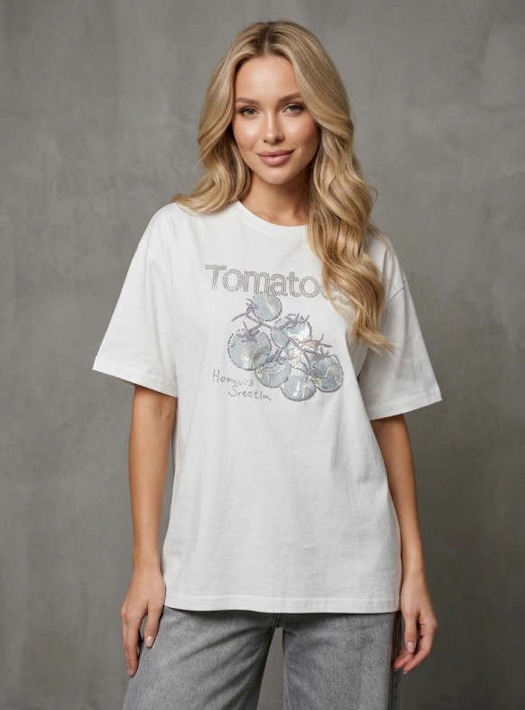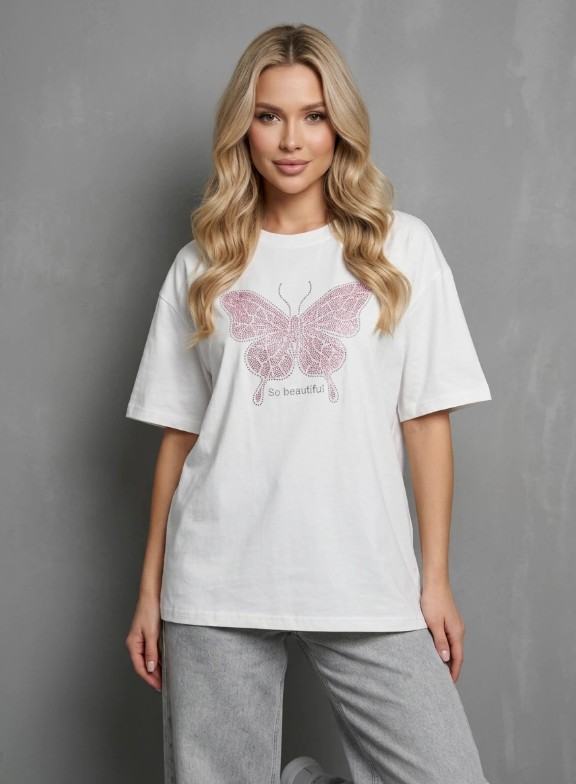 Футболка со стразами OVER SIZE (хлопок)