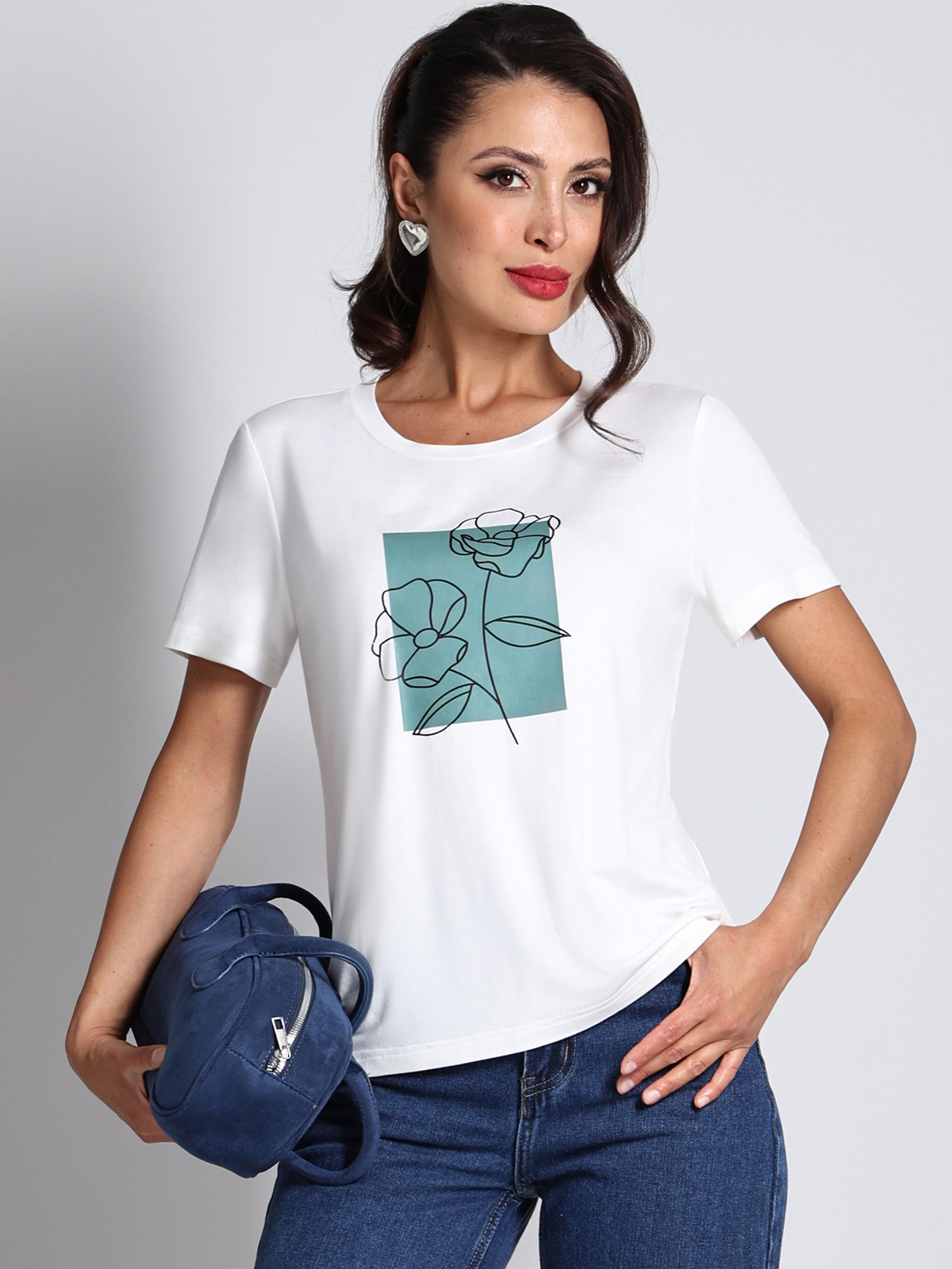 Футболка - это классический элемент гардероба, который подходит для любого сезона. Изготовлена из качественного трикотажного материала, обеспечивающего комфорт и удобство в повседневном использовании. Округлый вырез горловины делает её универсальной и подходящей для различных стилей одежды. Короткие рукава обеспечивают свободу движения и дополнительный комфорт в жаркую погоду. Термопечать добавляет оригинальности и стиля этой футболке. Легкий уход - бережная стирка при 30 градусах - делает её удобным и практичным выбором для ежедневного использования.