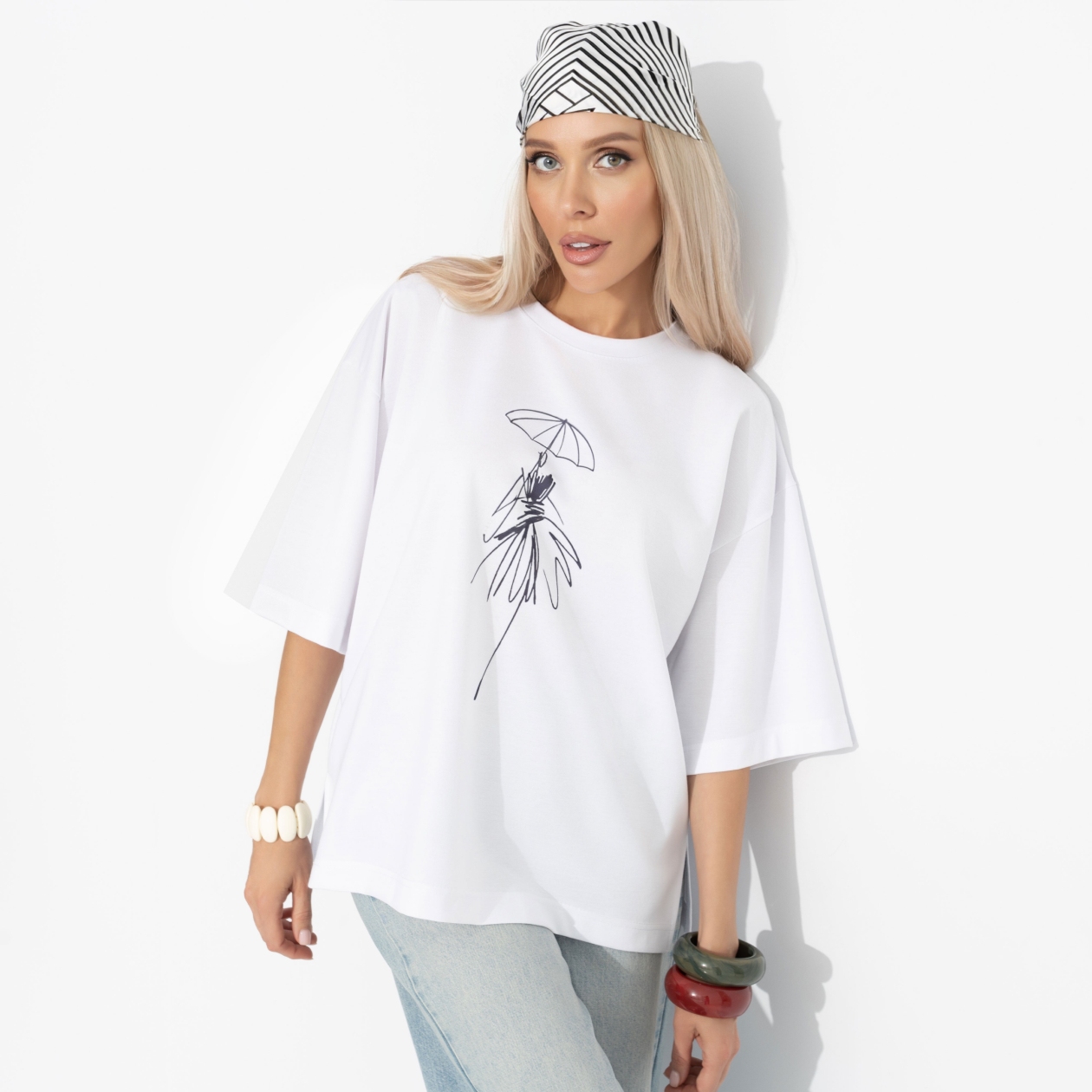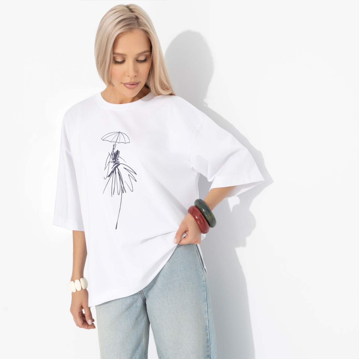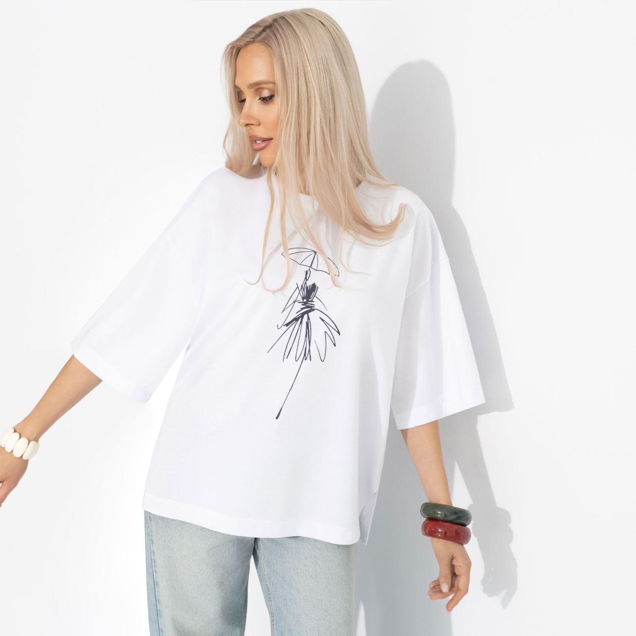 Фундамент твоего гардероба от ЧАРУТТИ. Основа бесчисленных образов от расслабленного утра до динамичного дня. Футболку можно легко комбинировать с чем угодно: от строгих брюк до романтичных юбок. Мягкая ткань и комфортный силуэт дарят ощущение лёгкости и уверенности в каждом движении. Футболка свободного кроя удлиненная. Принт напечатан на ткани.