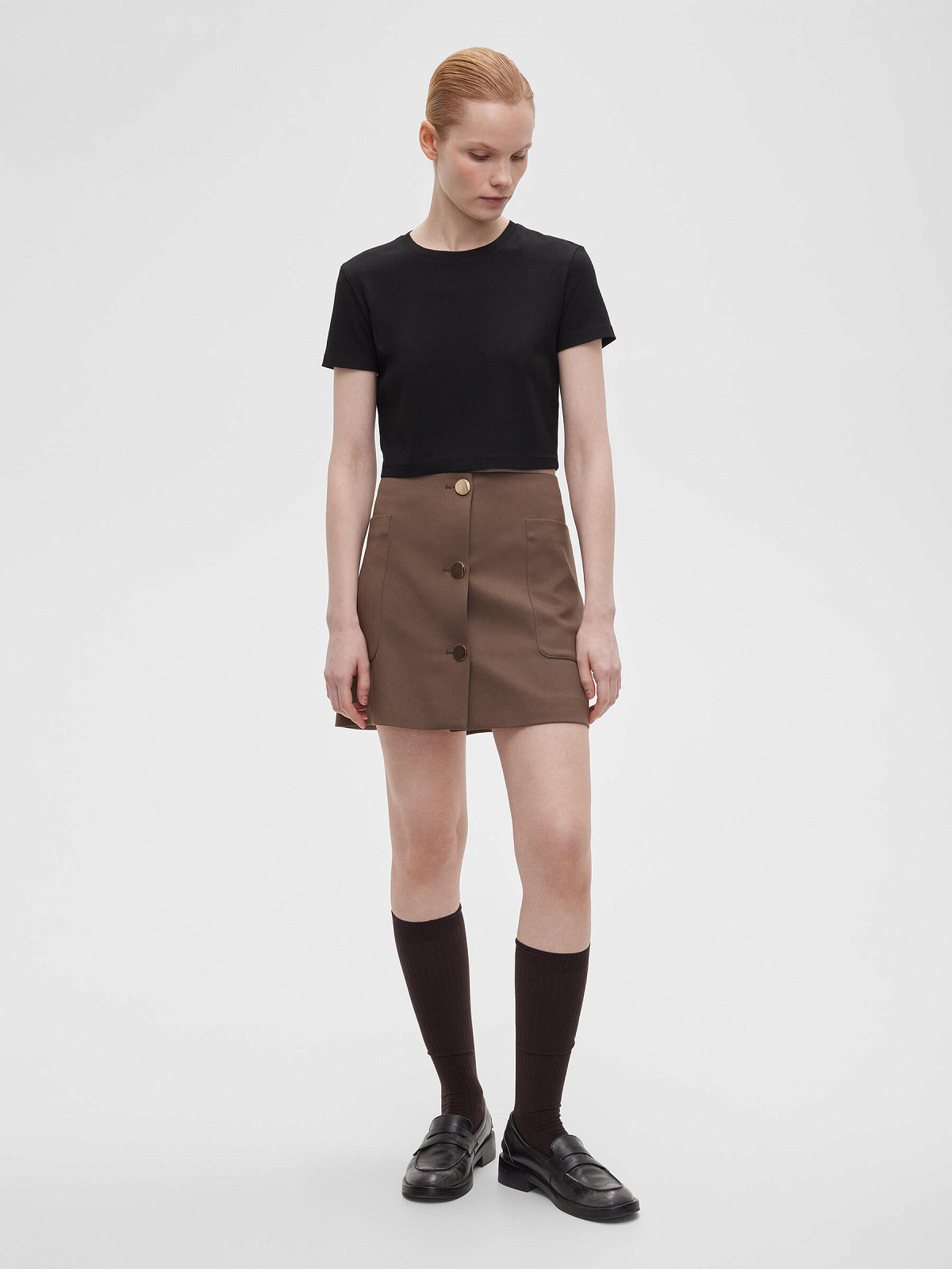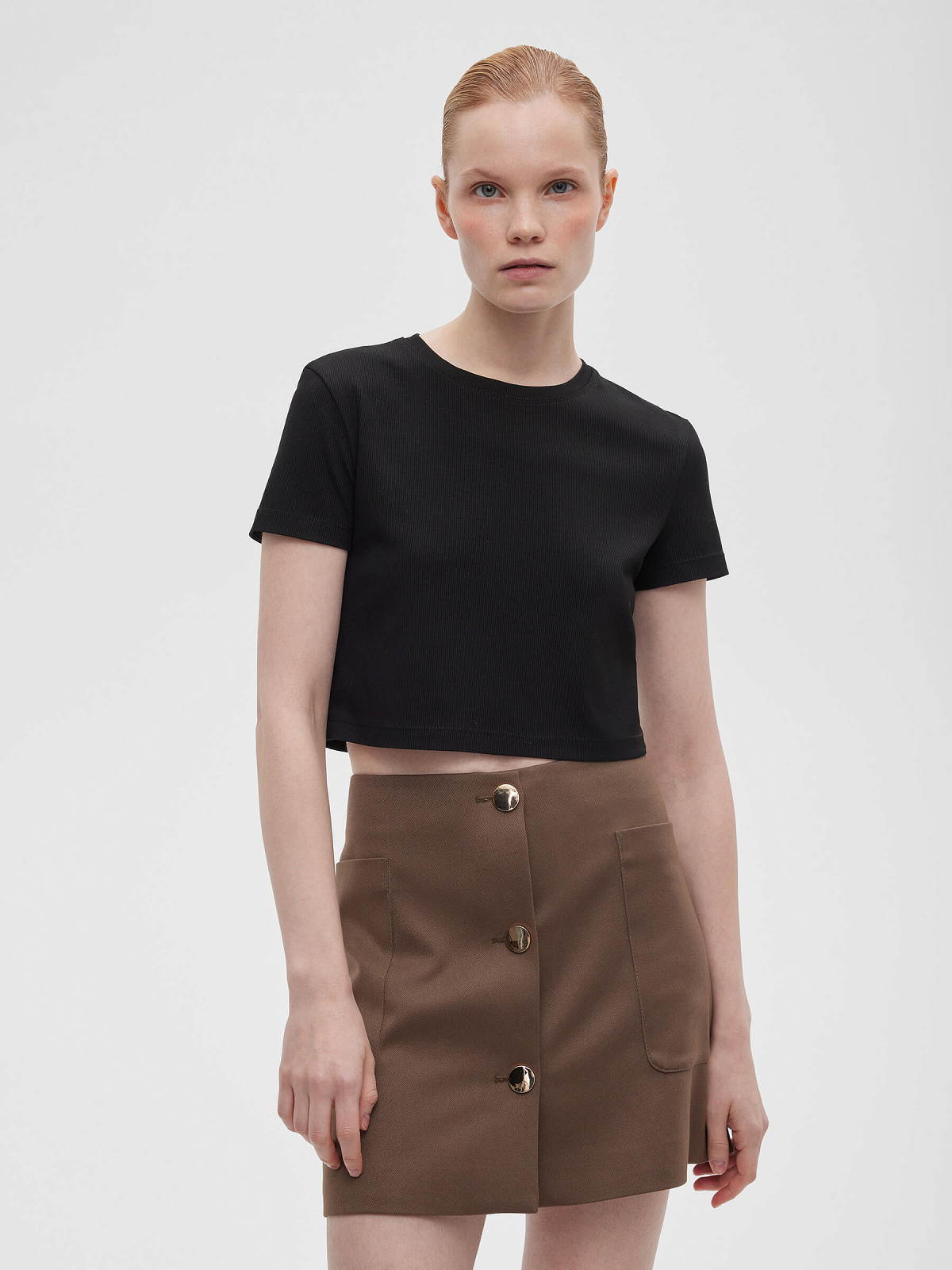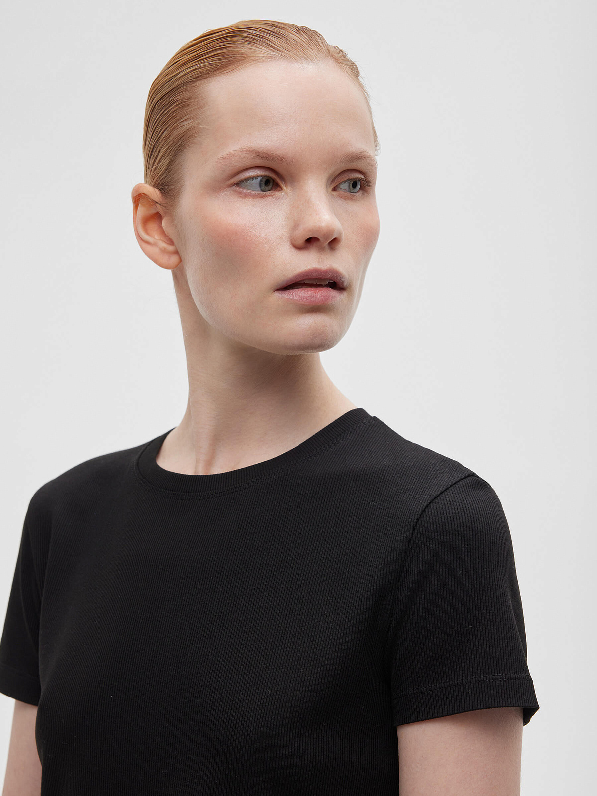 Футболка укороченная прилегающего кроя из трикотажа в рубчик