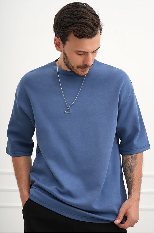 Мужская футболка оверсайз – комфорт и стиль каждый день. Плотная футболка станет основой многослойных образов. Лаконичная синяя футболка — идеальный выбор для тех, кто ценит универсальность и классический дизайн. Плотный трикотаж (310 г/м²), свободный силуэт и удлиненный крой делают эту футболку незаменимой для стильных образов.