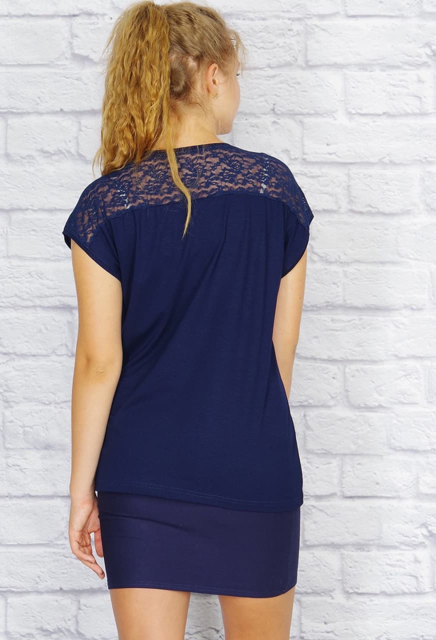 Футболка "Жаклин", кружево (тёмно-синий)