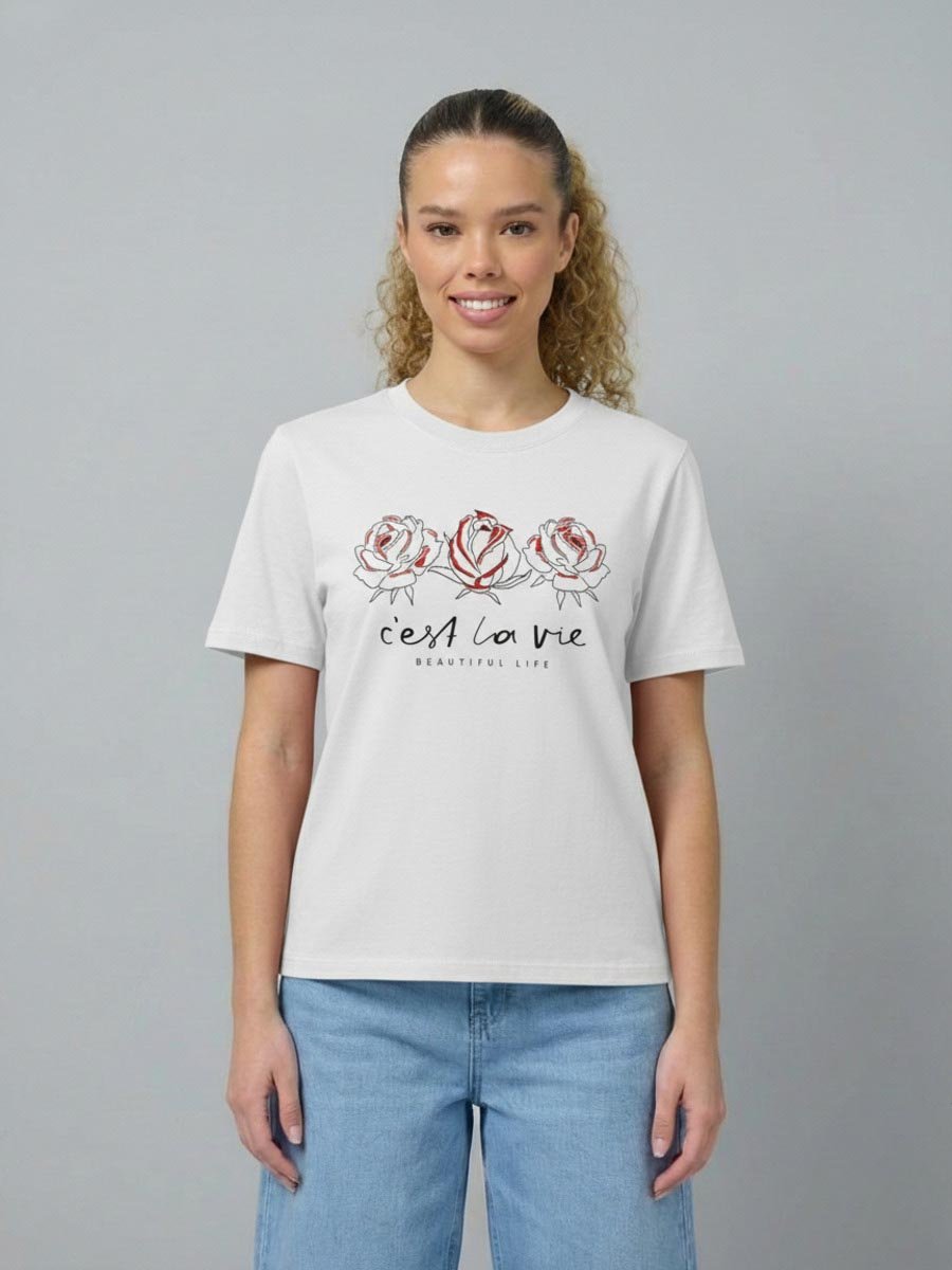 Женская футболка F5, Comfort fit (свободный силуэт), круглый вырез горловины, короткий рукав. Выполнена из классического трикотажного полотна. 100%Хлопок