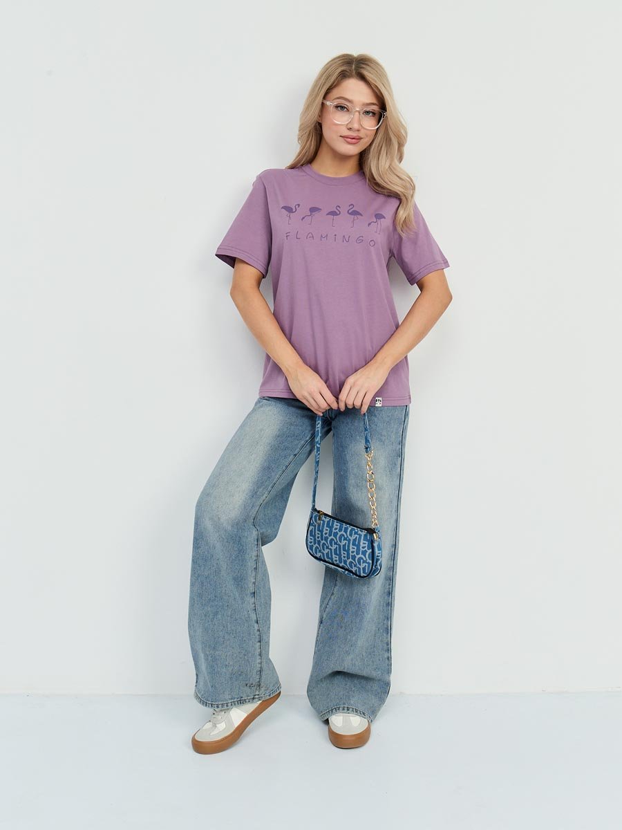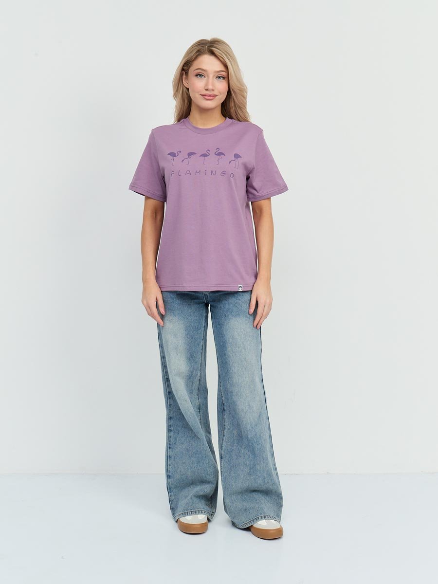 Женская футболка F5, Comfort fit (свободный силуэт), круглый вырез горловины, короткий рукав. Выполнена из классического трикотажного полотна. 100%Хлопок