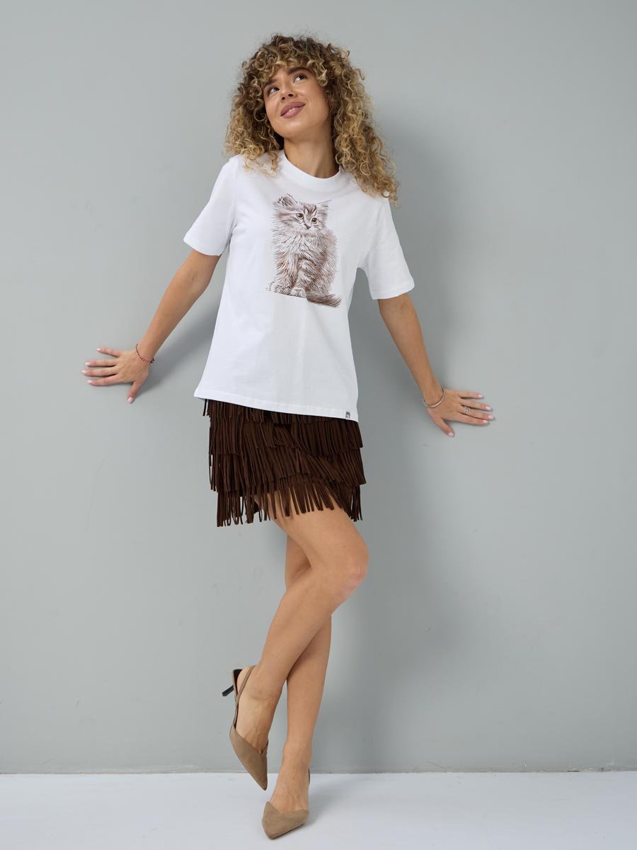 Женская футболка F5, Comfort fit (свободный силуэт), круглый вырез горловины, короткий рукав. Выполнена из классического трикотажного полотна. 100%Хлопок