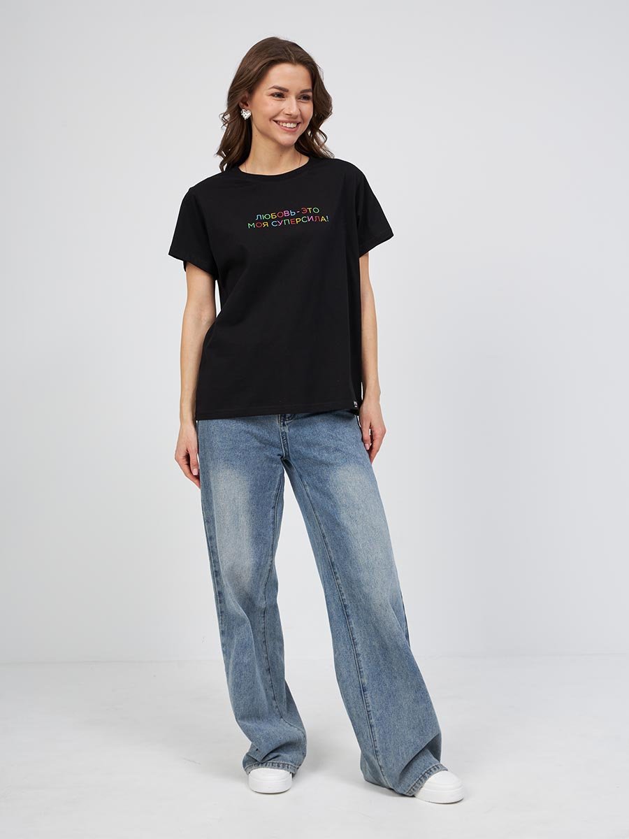 Женская футболка F5, Oversize fit (свободный силуэт), круглый вырез горловины, короткий цельнокроеный рукав. Выполнена из классического трикотажного полотна. 100%Хлопок