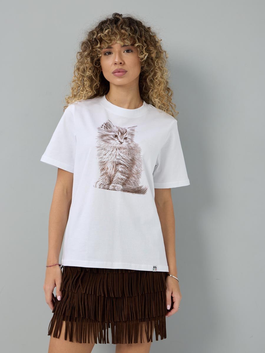 Женская футболка F5, Comfort fit (свободный силуэт), круглый вырез горловины, короткий рукав. Выполнена из классического трикотажного полотна.