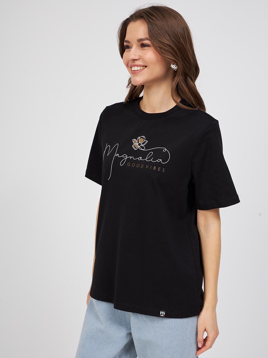 Женская футболка F5, Comfort fit (свободный силуэт), круглый вырез горловины, короткий рукав. Выполнена из классического трикотажного полотна.