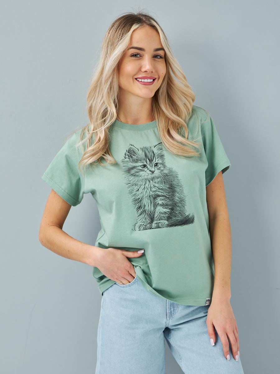 Женская футболка F5, Oversize fit (свободный силуэт), круглый вырез горловины, короткий цельнокроеный рукав. Выполнена из классического трикотажного полотна.