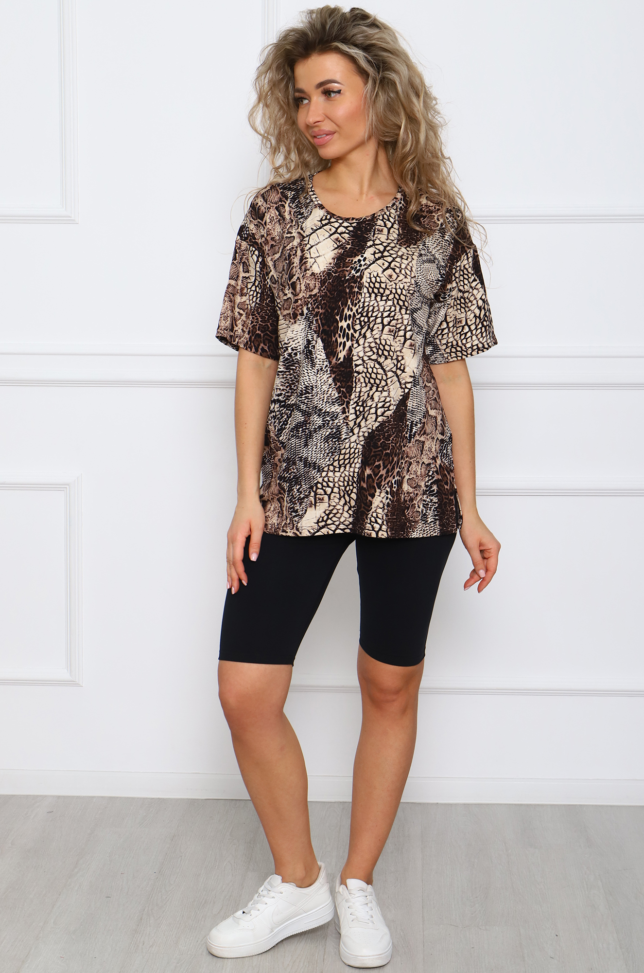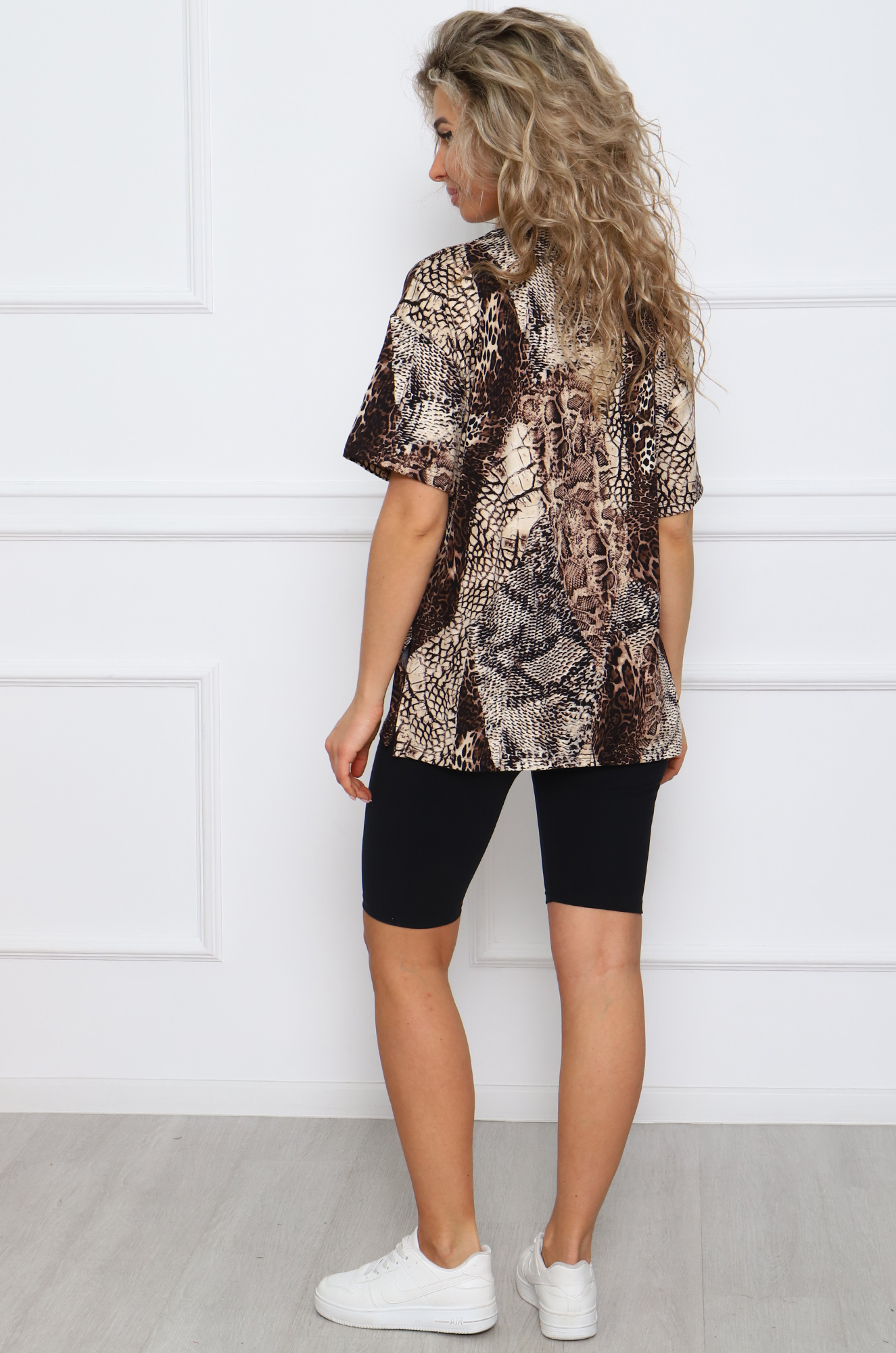 Стильная женская футболка из мягкой вискозы с леопардовым принтом. Модель оверсайз, удлинённая, свободного прямого кроя,со спущенным рукавом. По бокам разрезы. Футболка придется по нраву многим любителям вещей оверсайз, а интересный яркий принт не оставит равнодушным. Леопардовый рисунок это признаный символ женственности и успеха.