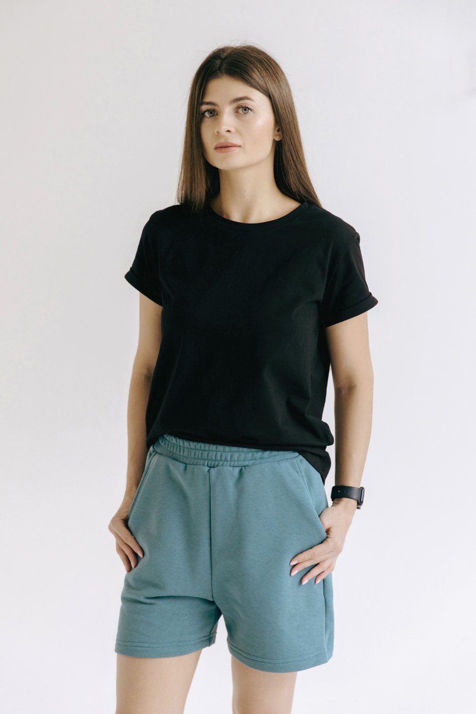 Футболка умеренного объема с подворотами на рукавах