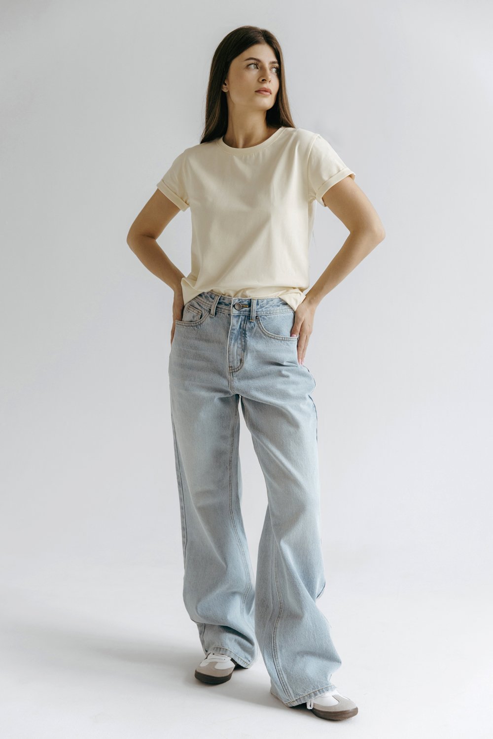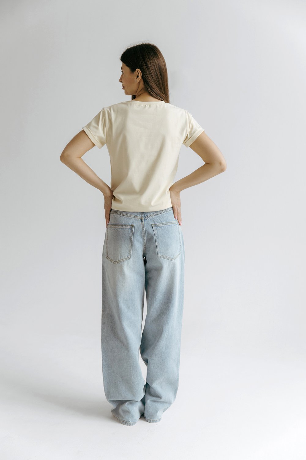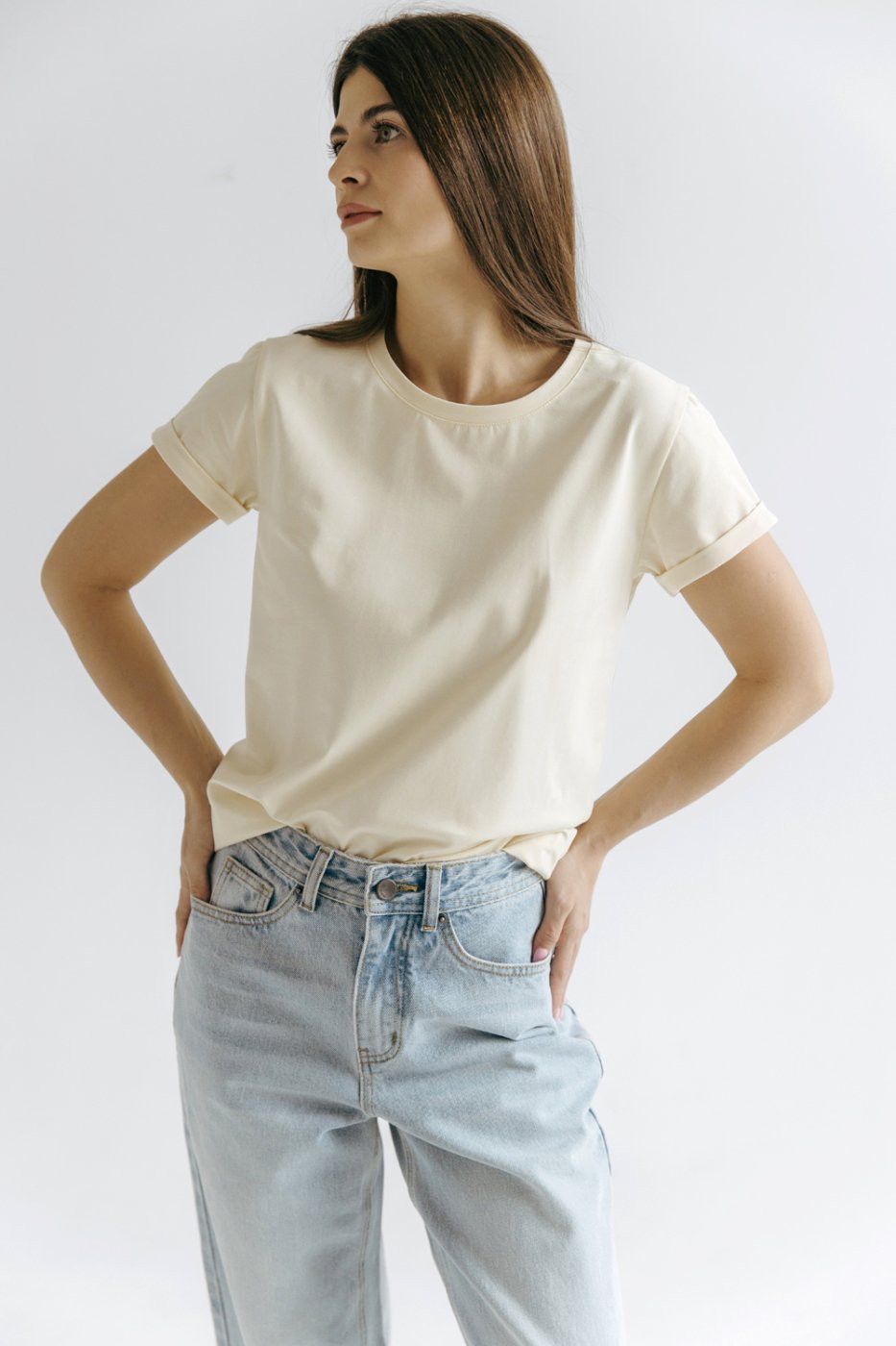 Футболка умеренного объема с подворотами на рукавах