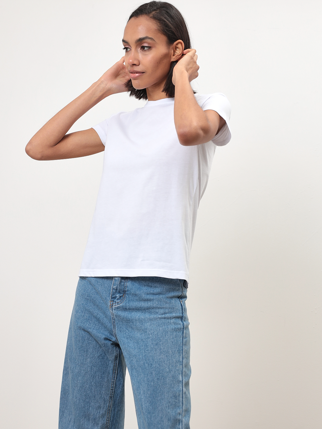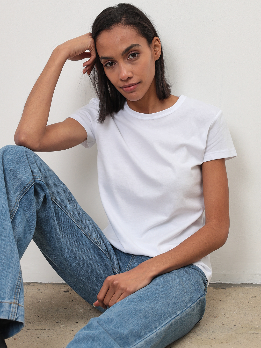 Цвет: Белый Рисунок: Без рисунка<..показать/li> Состав: 100% хлопок Модель: Прямая Ворот: Круглый Силуэт: Прямой силуэт / Сlassic fit/li>