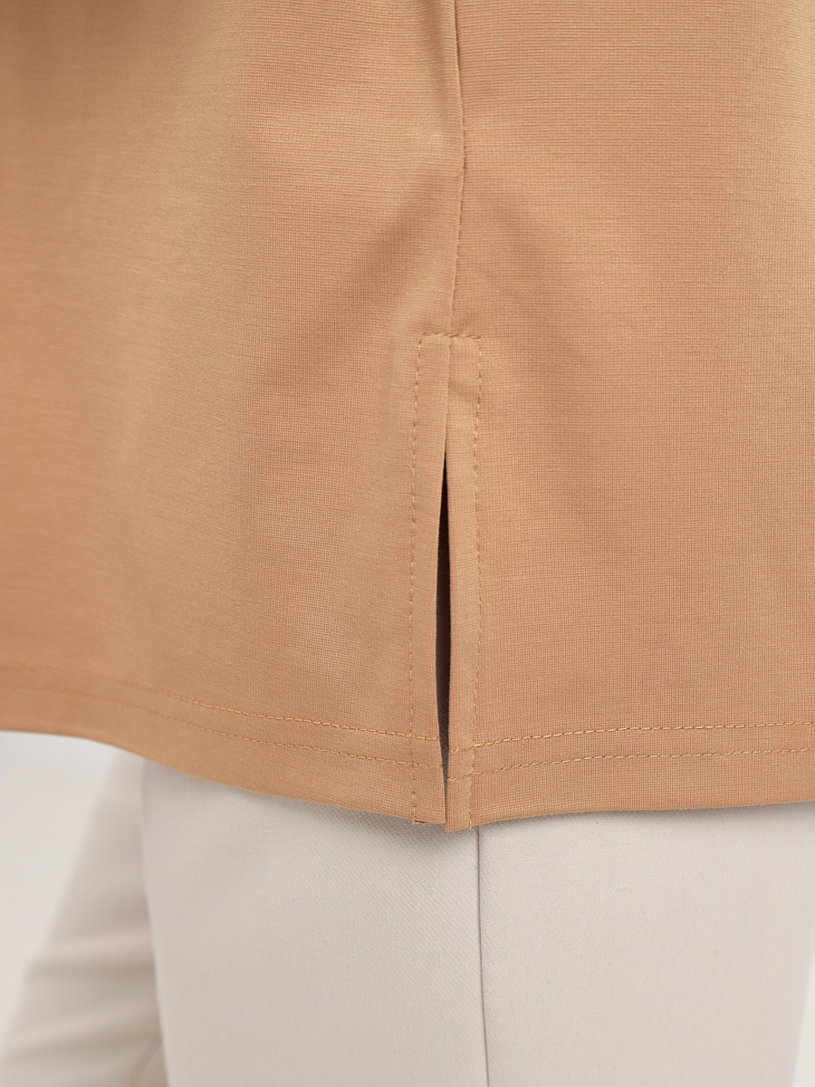 Цвет: Бежевый Рисунок: Без рисунк..показатьа Состав: 69%вискоза,22%нейлон,9%спандекс Модель: Прямая Ворот: Круглый Силуэт: Прямой силуэт / Сlassic fitа