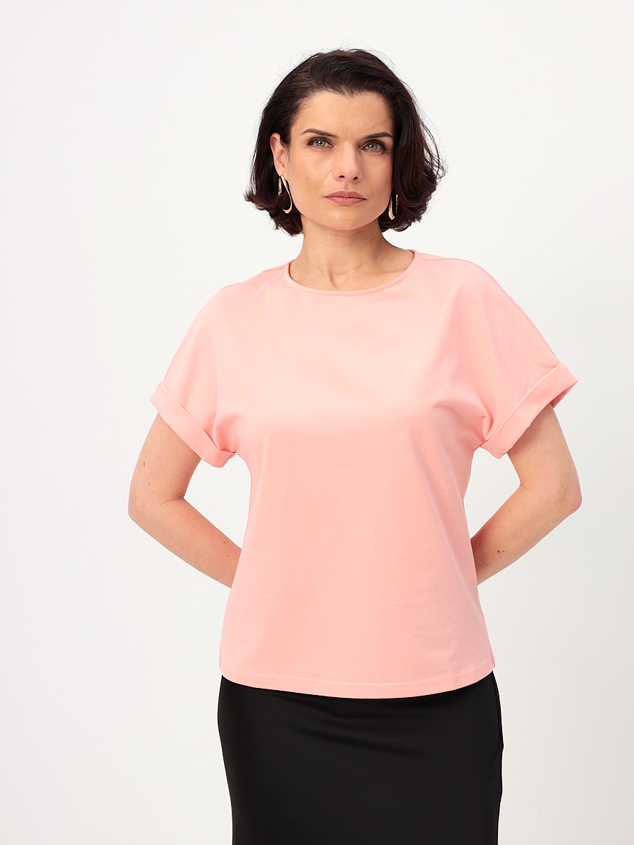 Цвет: Розовый Рисунок: Без рисунк..показатьа Состав: 95% хлопок 5% эластан Модель: Прямая Ворот: Круглый Силуэт: Прямой силуэт / Сlassic fitа