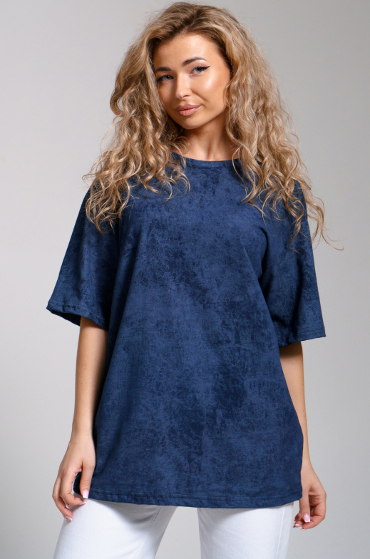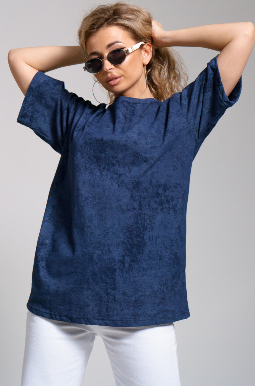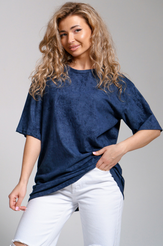 Стильная женская хлопковая футболка с эффектом варенки. Модель оверсайз, удлинённая, свободного прямого кроя, со спущенным рукавом. Ее можно легко сочетать с различными стилями одежды.