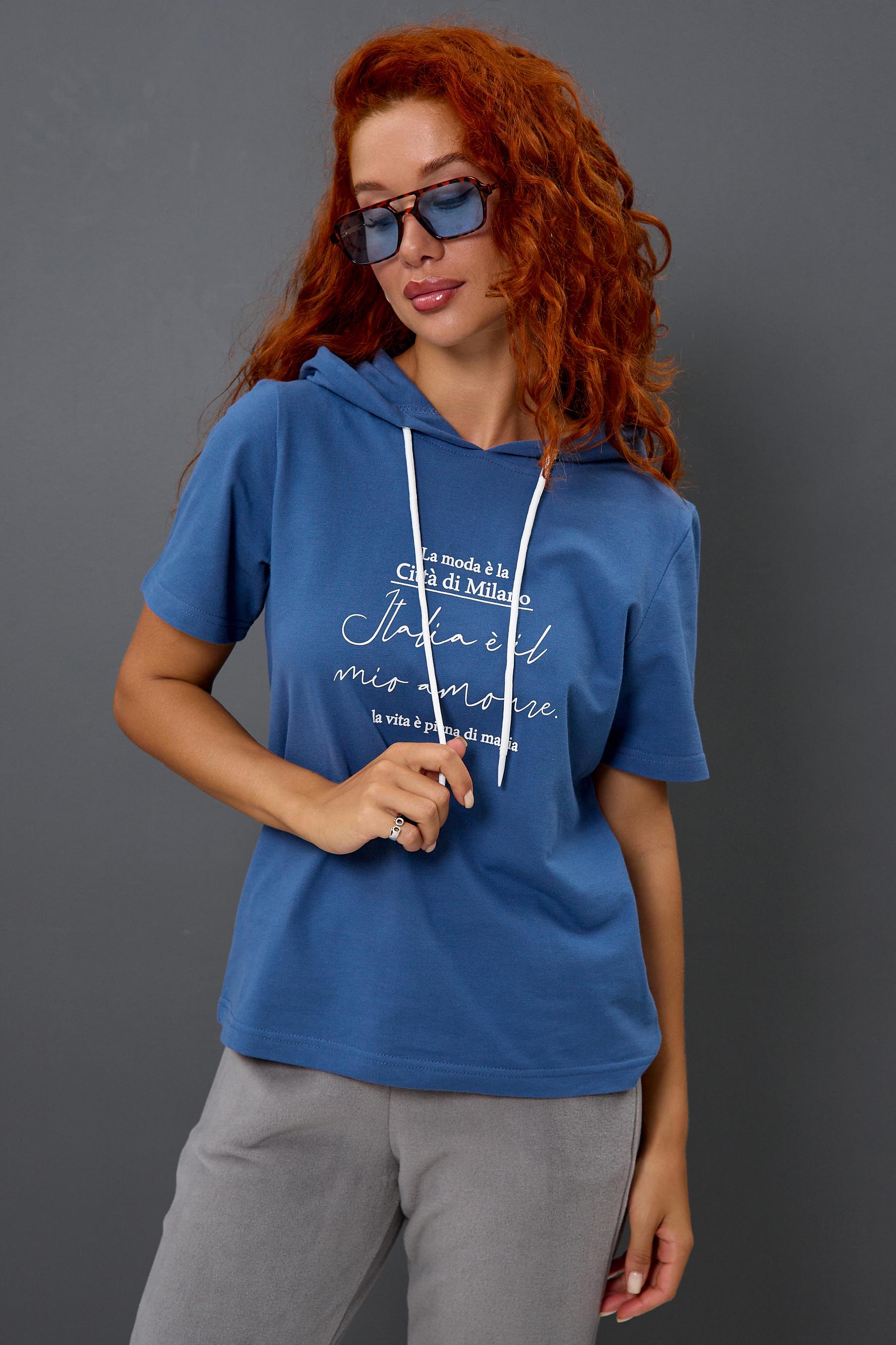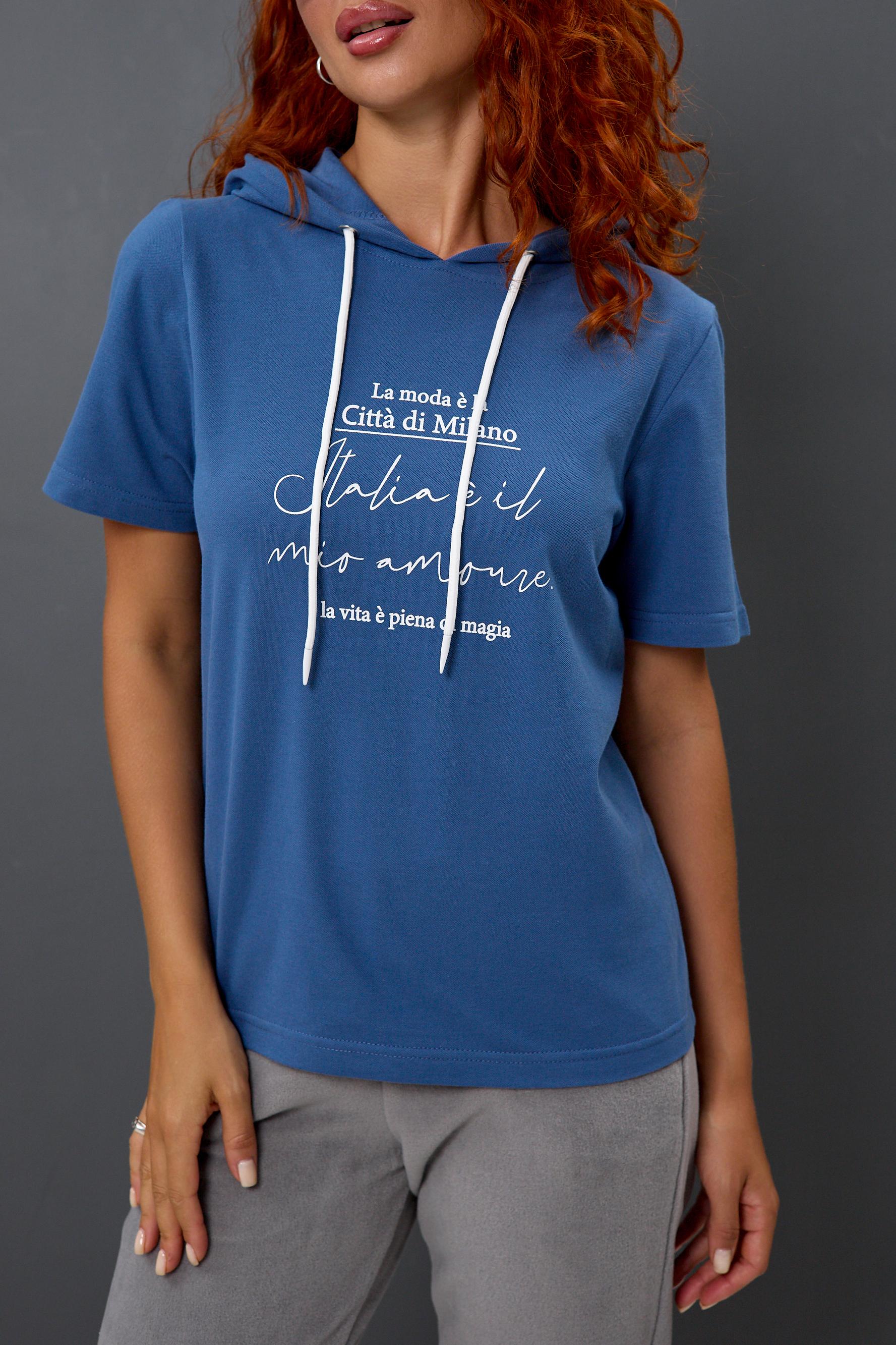 Спортивная футболка Трейси с капюшоном. Ткань Лакоста практична и удобна в повседневной носке. Футболка не мнется, пропускает воздух и максимально комфортна во время прогулок, занятий спортом или домашними делами. Стильная футболка с дизайнерским принтом и регулирующим шнурком выглядят модно и уникально.