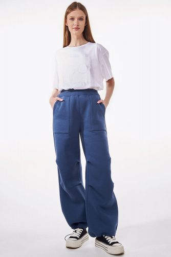 Современные комфортные брюки карго, выполнены из футера с начесом. Брюки расширенные к низу, с возможностью заузить и зафиксировать ширину внизу (низ имеет кулиску с резинкой и фиксатором). На передних половинках брюк удобные накладные карманы, складки в районе линии колен. Пояс из ткани компаньена кошкорсе со шнуром и резинкой внутри.