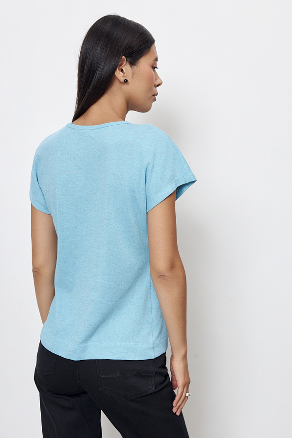 Джемпер из хлопкового эластичного полотна. Изделие полуприлегающего силуэта. Цельнокроеный короткий рукав. Вырез горловины окантован эластичной бейкой. Женский джемпер стал незаменимой и популярной разновидностью одежды, которая может применяться буквально во всех случаях жизни.