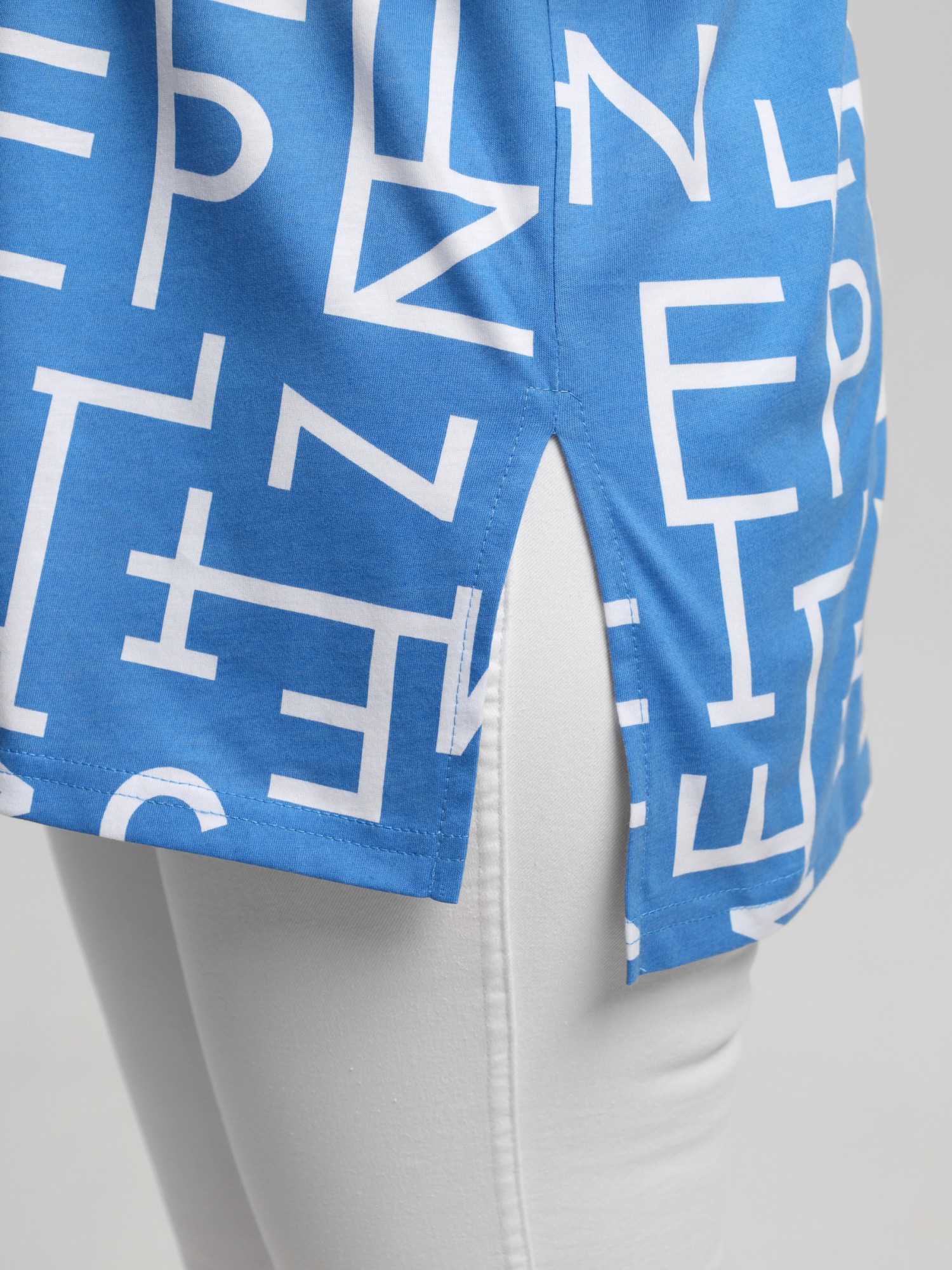 Футболка женская из трикотажного полотна «кулирка» с набивным рисунком, свободного покроя, со спущенным плечом и втачными рукавами длиной до локтя, горловиной овальной формы, обработанной притачной бейкой, в нижней части боковых швов – разрезы.