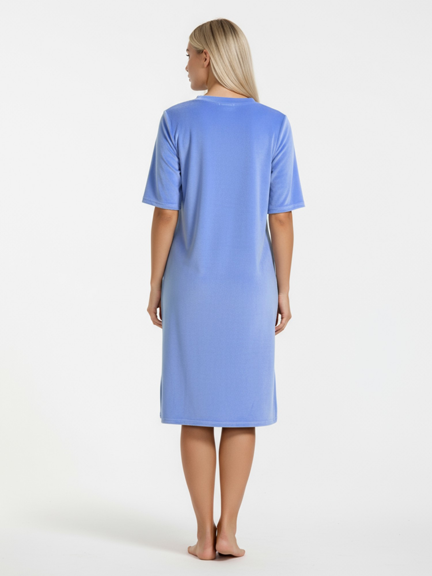 Туника женская из гладкокрашенного полотна «велюр стрейч», свободного покроя, с короткими втачными рукавами, горловиной овальной формы, обработанной втачной планкой и разрезами в боковых швах.