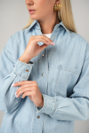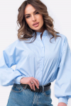 Голубая женская рубашка оверсайз создана для романтичных и смелых образов. Нарядная рубашка с воланами добавляет воздушности и выделяет из толпы.