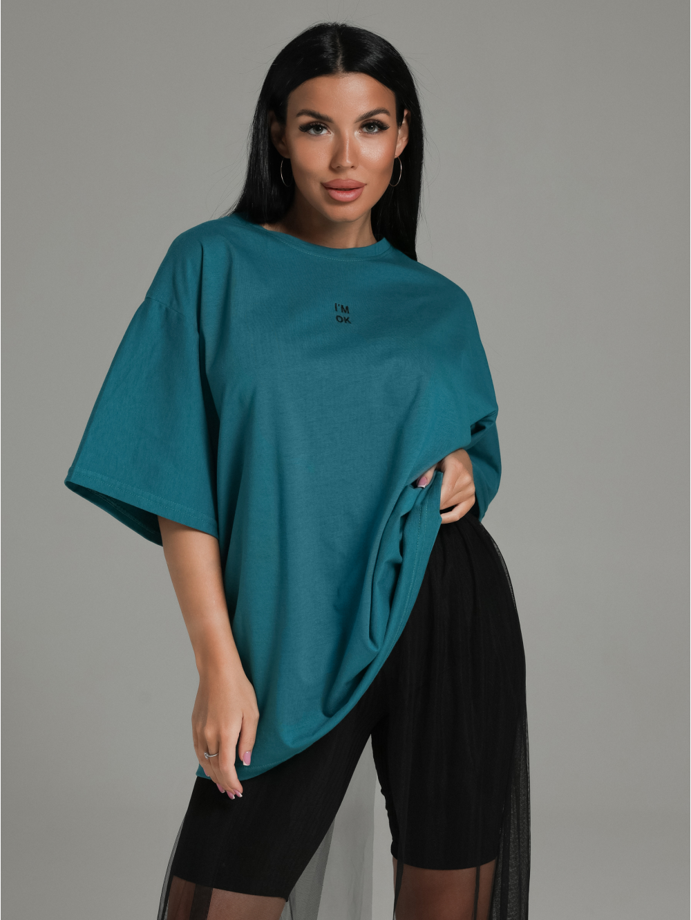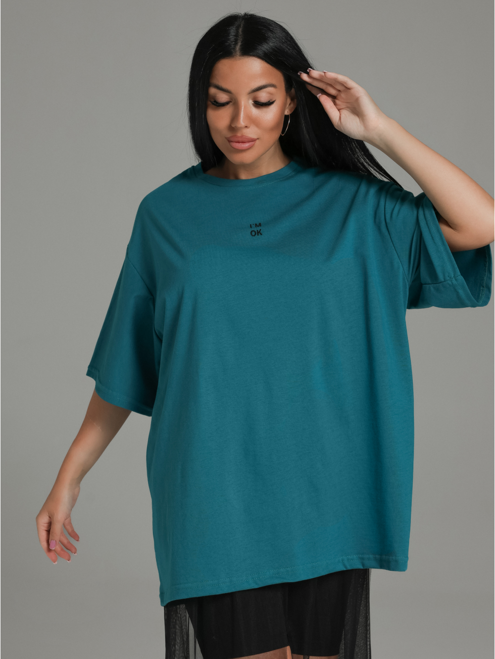 Футболка oversize коротким втачным рукавом. На полочке ВЫШИВКА.