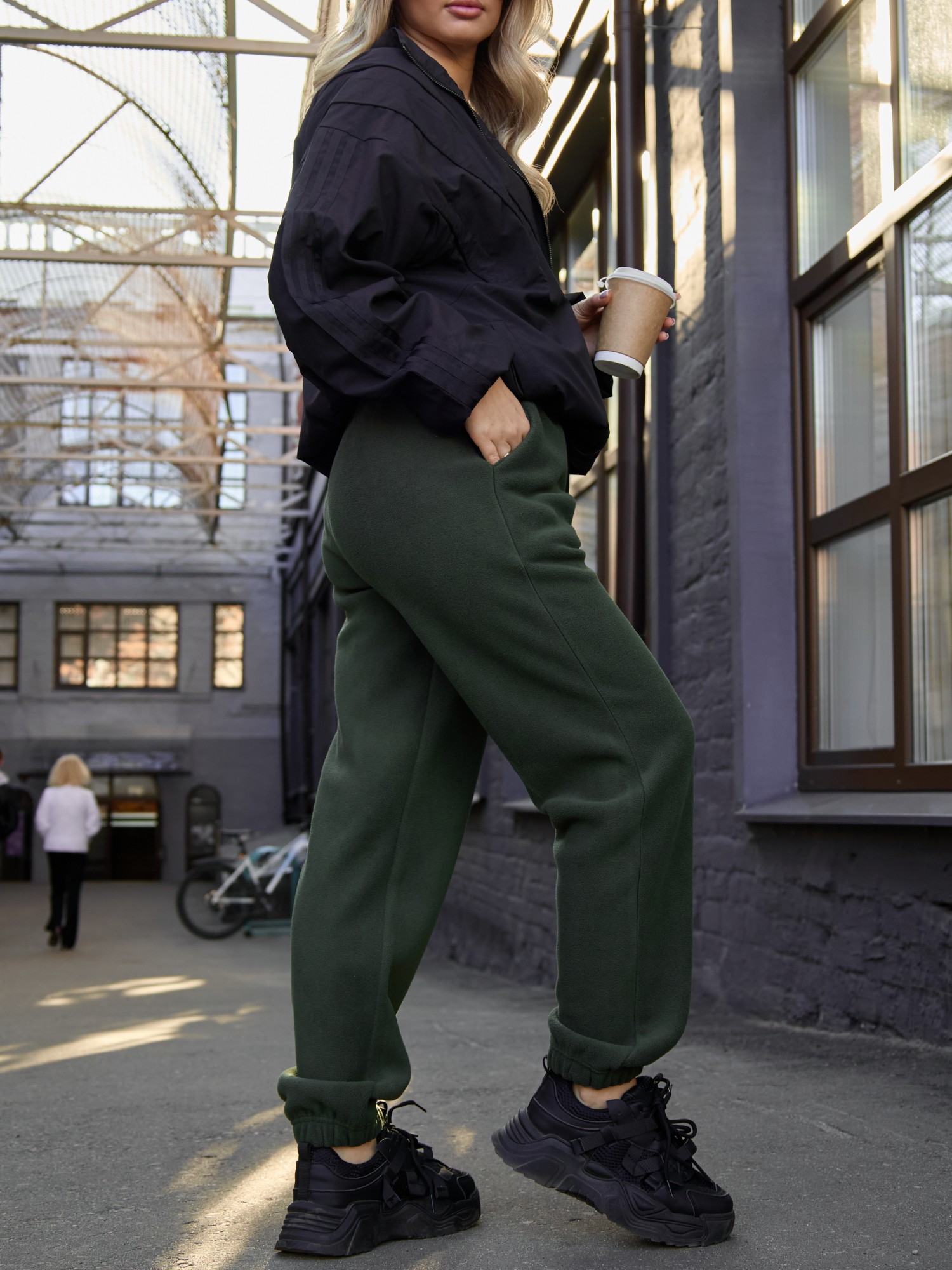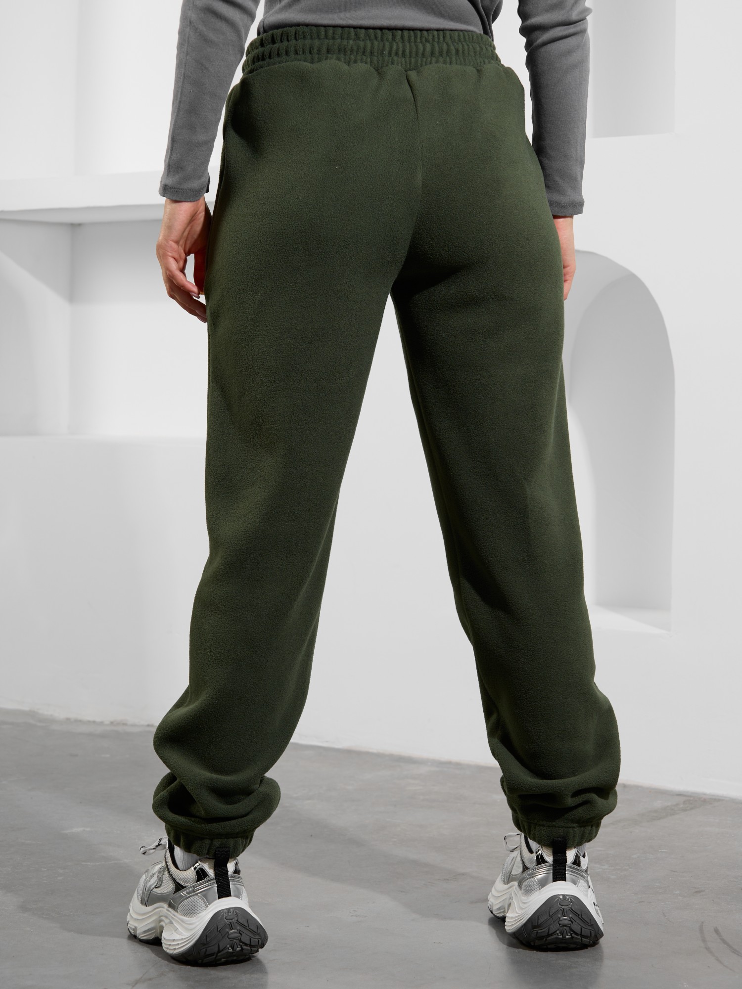Брюки молодежные из трикотажного гладкокрашенного полотна «флис», длинные, на притачном поясе с эластичной тесьмой внутри и шнурком, продетым через две петли в центре пояса, с карманами в боковых швах и эластичной тесьмой по низу.