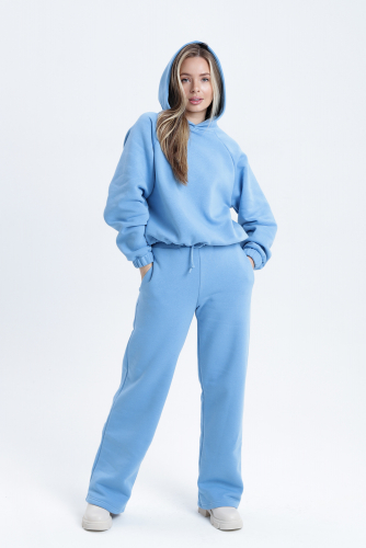 Спортивный костюм прекрасно подходит для прогулок на свежем воздухе или просто для уютных вечеров дома. Он изготовлен из качественных материалов, которые обеспечивают тепло и уют. Начес внутри костюма создает дополнительный комфорт, а свободный крой позволяет легко двигаться и чувствовать себя комфортно.