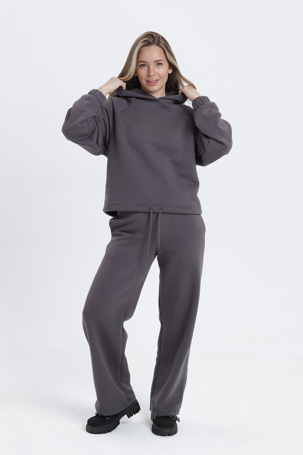 Выбирая этот костюм, вы получаете не только стильный, но и практичный вариант. Брюки имеют удобную посадку, что делает их идеальными для активных девушек и женщин. Такой комплект отлично сочетается с кроссовками и ботинками, что позволяет создать гармоничный образ для занятий спортом или отдыха с друзьями.