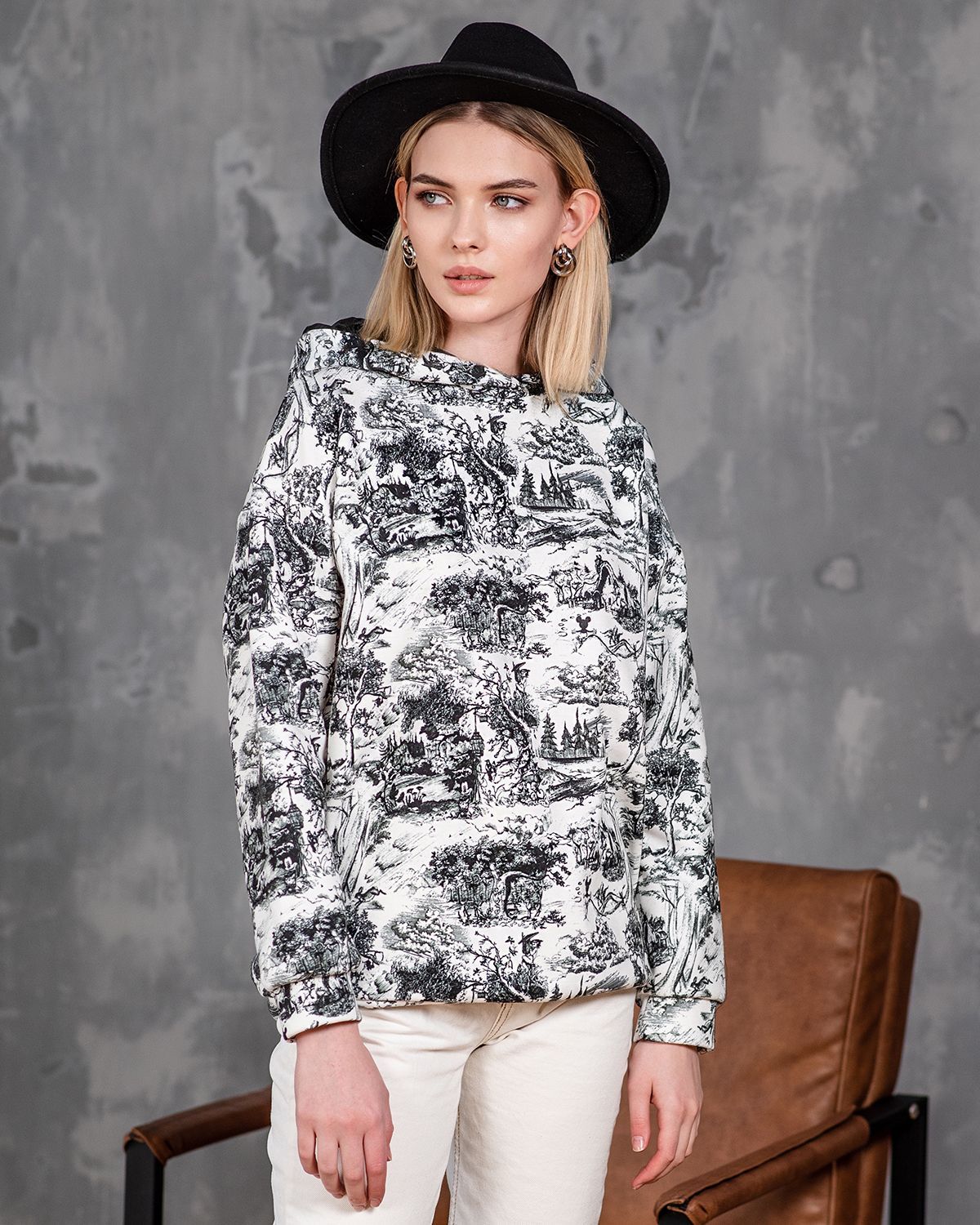 Худи женское оверсайз кроя, полностью покрытое принтом — это цельный холст, которым можно укрыться от всех пасмурных ненастий. Кофта с капюшоном сделана из приятного для тела материала интерлок. Внутри это хлопок, а снаружи специальный слой для печати рисунка. Принт, нанесённый на ткань методом сублимационной печати — гарантия долгожительства красок, их яркости и сочности. Рисунки не выстирываются даже после 50 стирок! Капюшон украшает шелковая подкладка, которая красиво переливается и служит дополнительным декором, привлекающим внимание. Худи женское тёплое имеет свободный крой. Учитывайте, что толстовка женская оверсайз и должна иметь свободную посадку. На модели надет самый маленький размер (42-44). 50% хлопок, 50% полиэстер