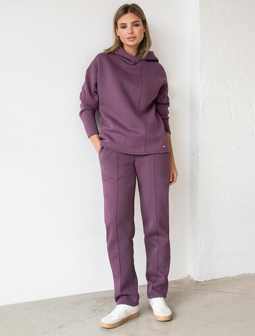 Худи выполнено из футера-трехнитки с начесом. Лаконичная модель не имеет излишних деталей, дополненная только декоративным швом спереди и удлиненной спинкой. Комфортно сидит по фигуре не сковывая движений. Гармонично сочетается в костюме с брюками D44.124 и D44.129.