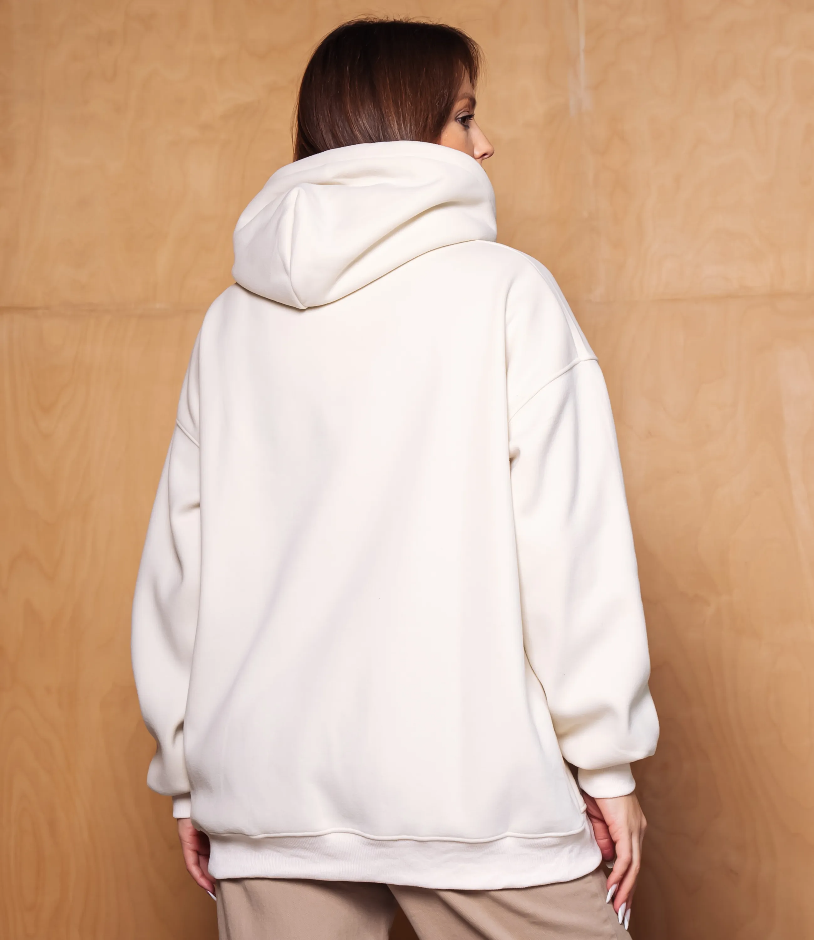 Худи – это одежда, которая подчеркивает уникальность каждой женщины. Свободного оверсайзного кроя до линии бёдер с опущенной линией плеча, выполнено из плотного трикотажа с мягкой начёсной внутренней стороной, держит форму и даёт лёгкое утепление; двухслойный втачной капюшон средней глубины с длинными продевными шнурками, классическая конструкция через‑голову без центральной молнии; крупная рукописная надпись на передней части корпуса в центре как главный декоративный элемент; просторный накладной карман‑кенгуру с боковыми входами, усиленные швы в зонах нагрузки; длинные рукава с мягкими резиновыми манжетами для фиксации или сборки ткани. Для пошива использована ткань 90% хлопок и 10% полиэстер, которая характеризуется отличным качеством. Даже после многих стирок изделие не утратит первоначальной привлекательности. Вы сможете носить его с радостью. Обратите внимание на цвет и надпись, они являются стильными и полностью соответствуют фотографии на сайте. Чтобы вы были уверены в размере, мы представили на странице таблицу. Воспользовавшись ею, вы сможете сами обмерить себя и удостовериться. Предложенная нами цена является приемлемой. Не откажите себе в удовольствии быть неотразимой!