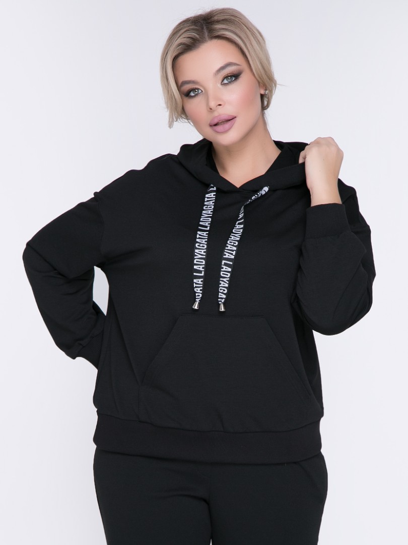 Худи свободного силуэта выполнено из трикотажного двуниточного “футера“.