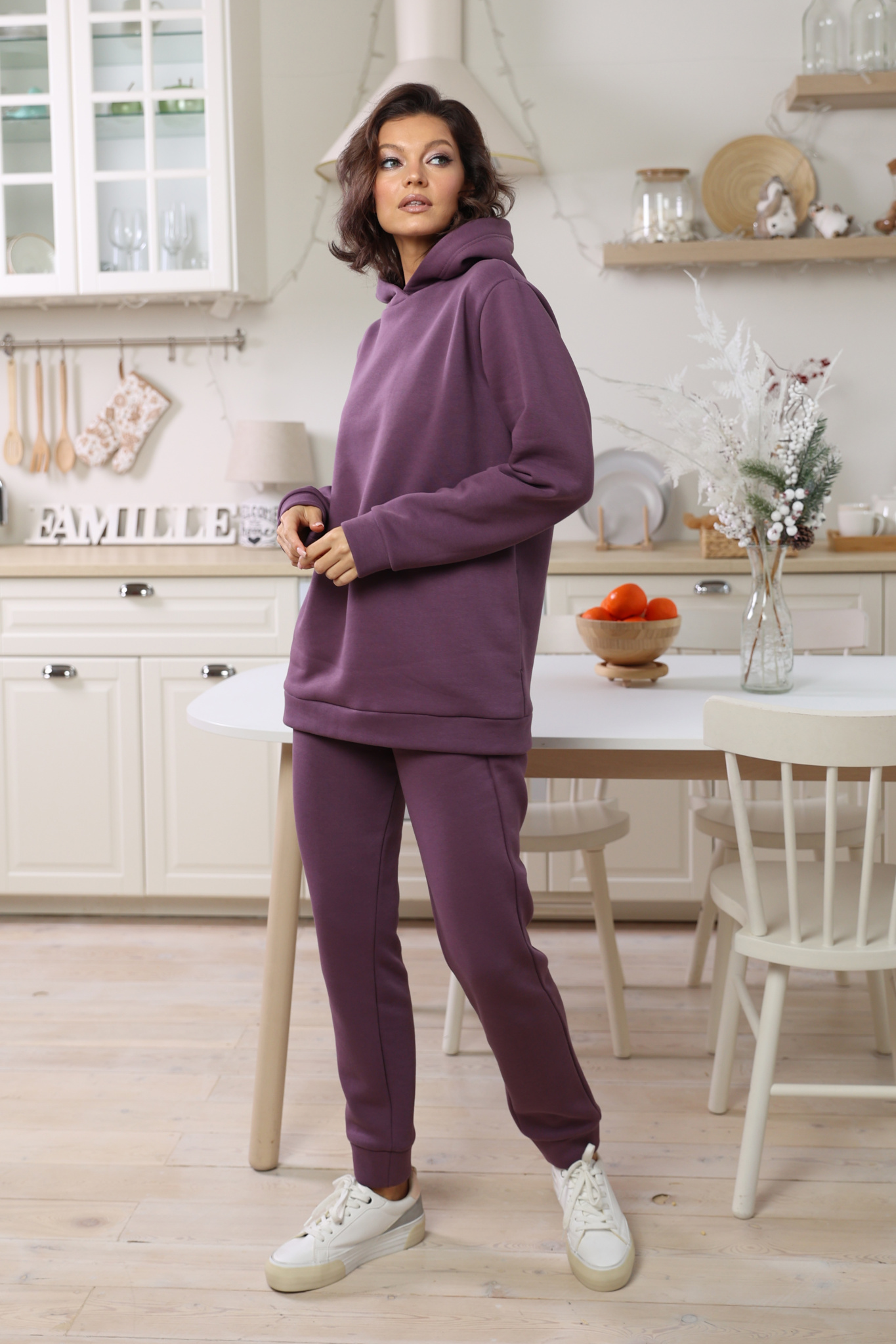 Худи из трикотажа с капюшоном и карманами. Манжеты на рукавах, притачной пояс - из основной ткани.