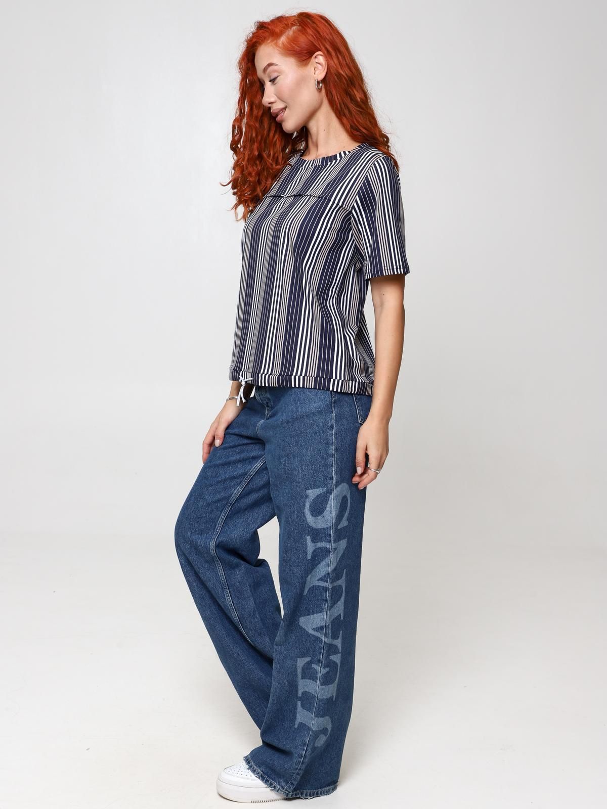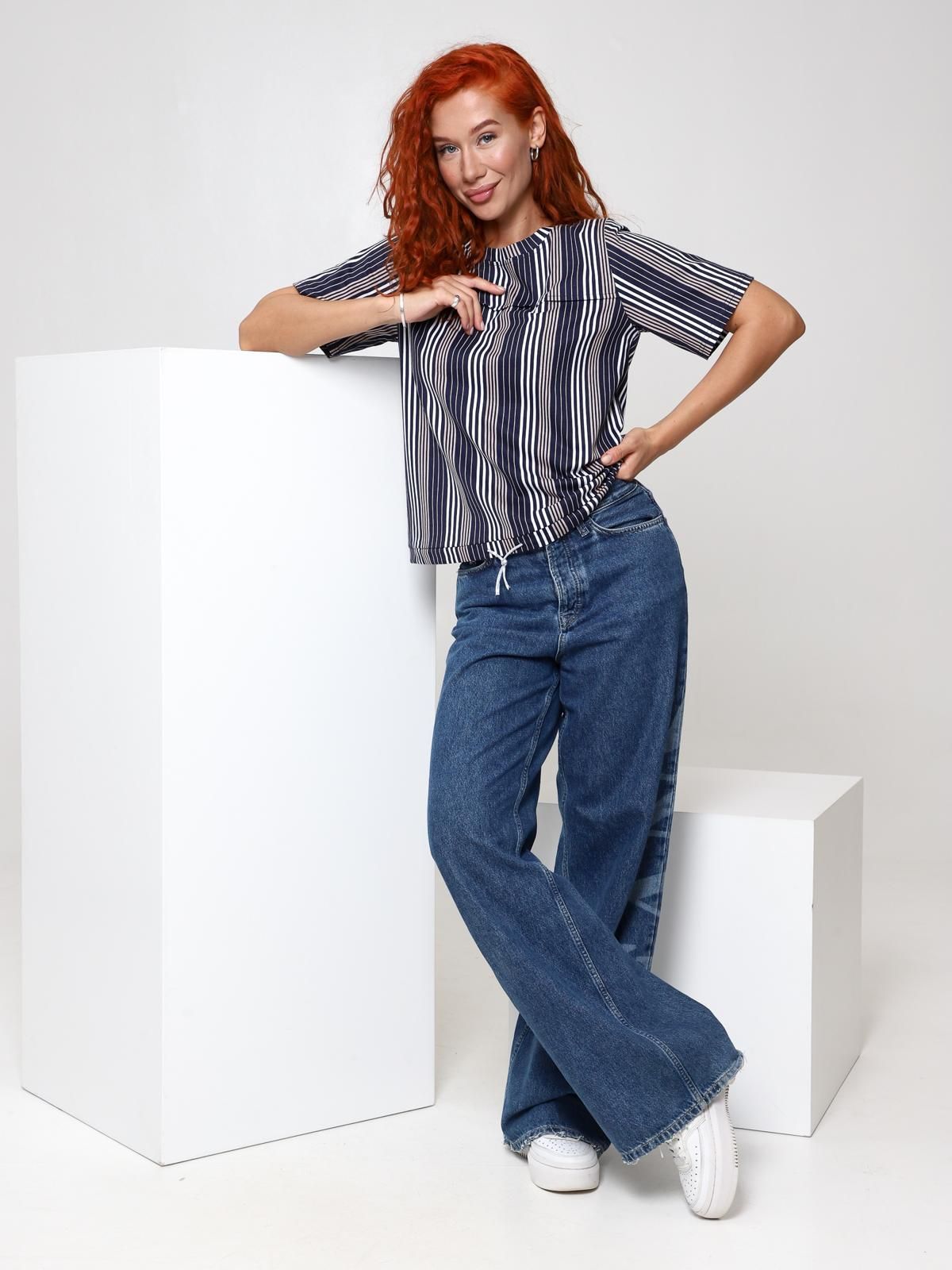 Модная женская футболка из хлопка. Этот материал приятно лежит на коже и не растягивается. Футболка прямого силуэта с удлиненным рукавом. по низу изделия утягивающая кулиска с завязками. Хорошо сочетается с любой одеждой.