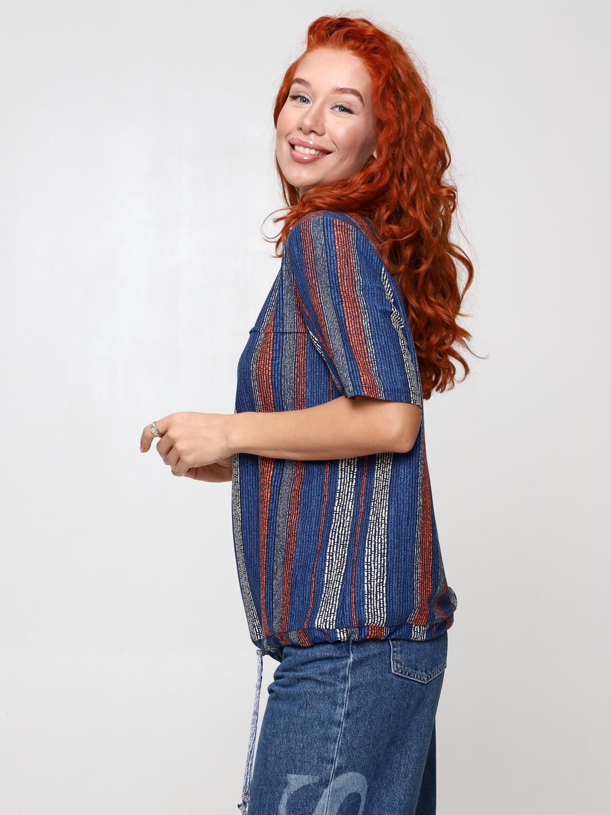 Модная женская футболка из хлопка. Этот материал приятно лежит на коже и не растягивается. Футболка прямого силуэта с удлиненным рукавом. по низу изделия утягивающая кулиска с завязками. Хорошо сочетается с любой одеждой.