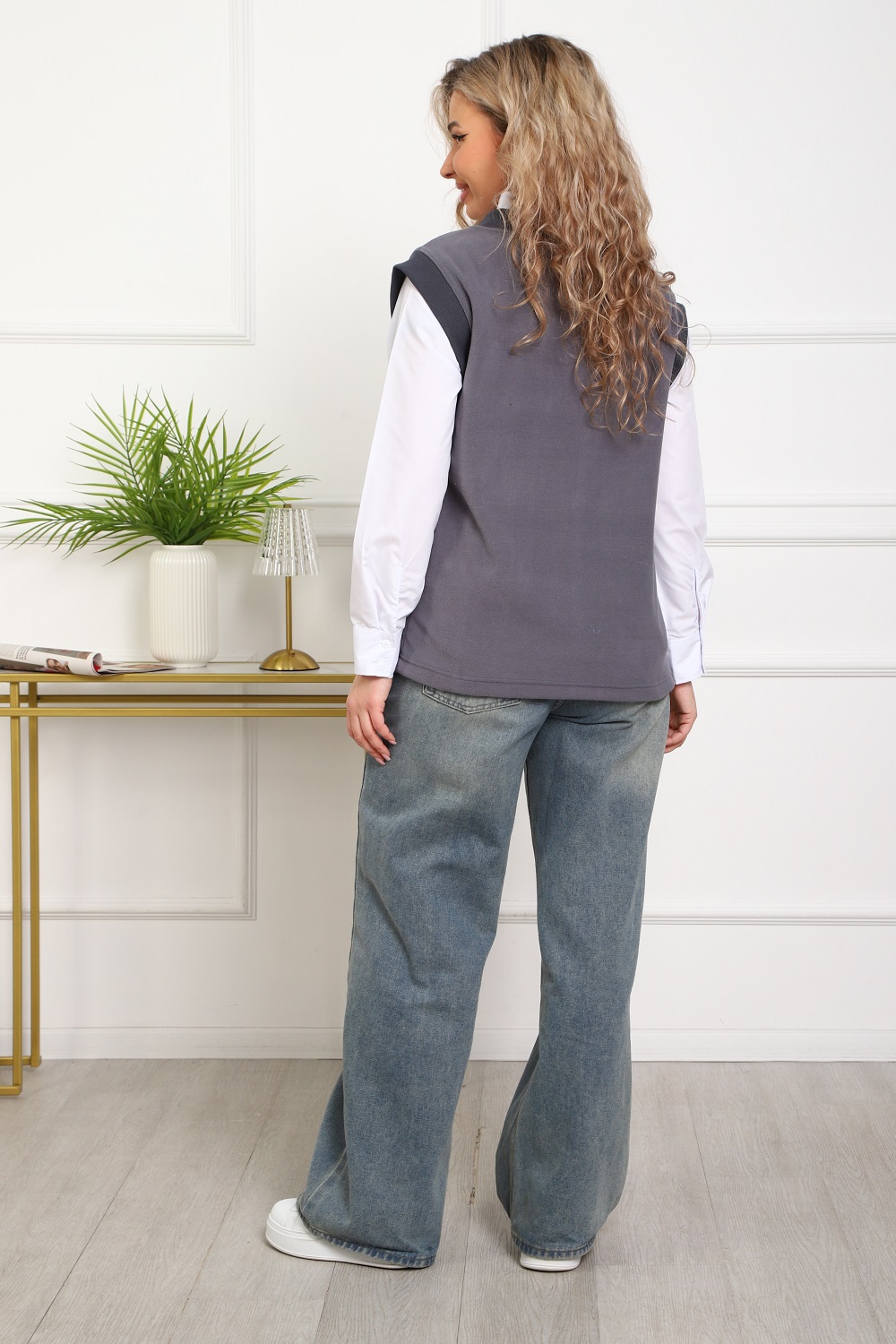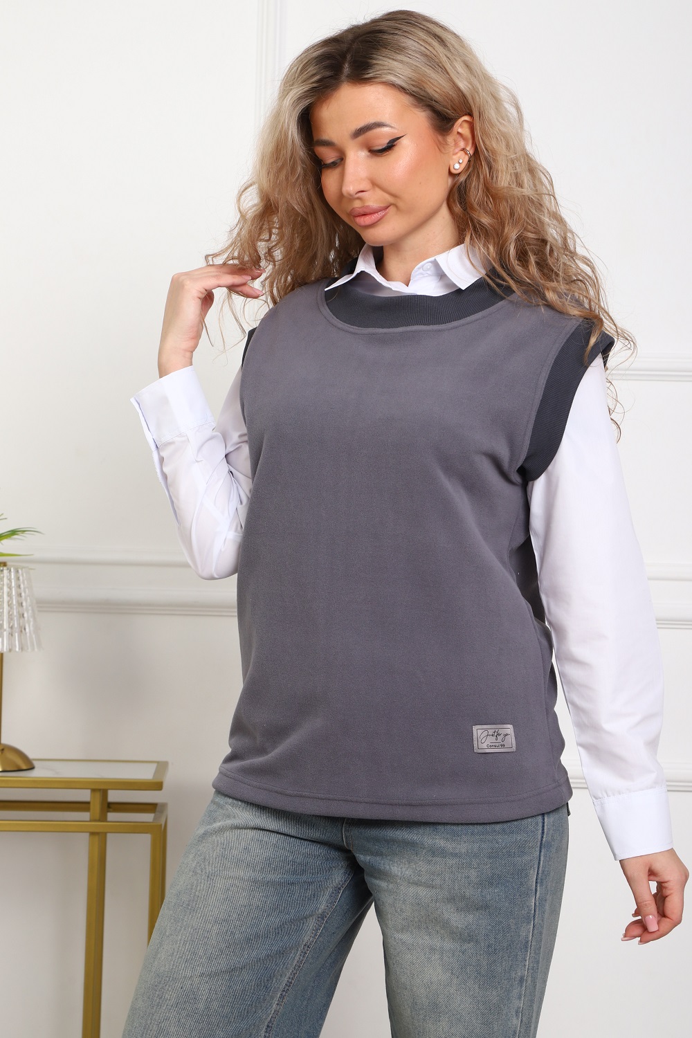 Жилет женский флисовый. Тёплый, лёгкий, уютный, износостойкий, долго сохраняет презентабельный вид, не скатывается. Универсальные цвета и силуэт, жилет сочетается со множеством вещей гардероба. Легко стирается и быстро сохнет. Вещь, которая необходима круглый год. На фото на модели жилетка размер 48, посадка по фигуре, 48 размер подойдет и на 44-46 размеры. Размеры 50 и 52 имеют более свободную посадку. На фото жилетка в комплекте с белой туникой (артикул 57020). Цвет: серый;хаки; Материал: флис;флис; Состав: полиэстер 100%.