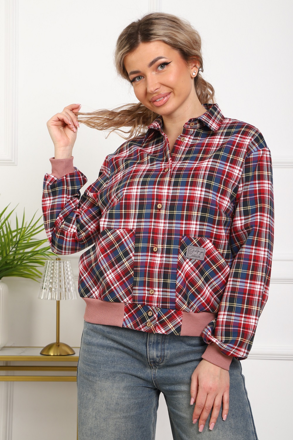 Рубашка женская кроя бомбер из тёплого хлопка (ткань - фуле, хлопок 100%). Длинный рукав на манжете, манжеты и пояс из трикотажа. Два удобных кармана, в которые помещается смартфон. Для сохранения эластичности трикотажа стирать рубашку рекомендуется в мешке для стирки. Ткань легко утюжится, относительно износостойкая, долго сохраняет презентабельный вид.