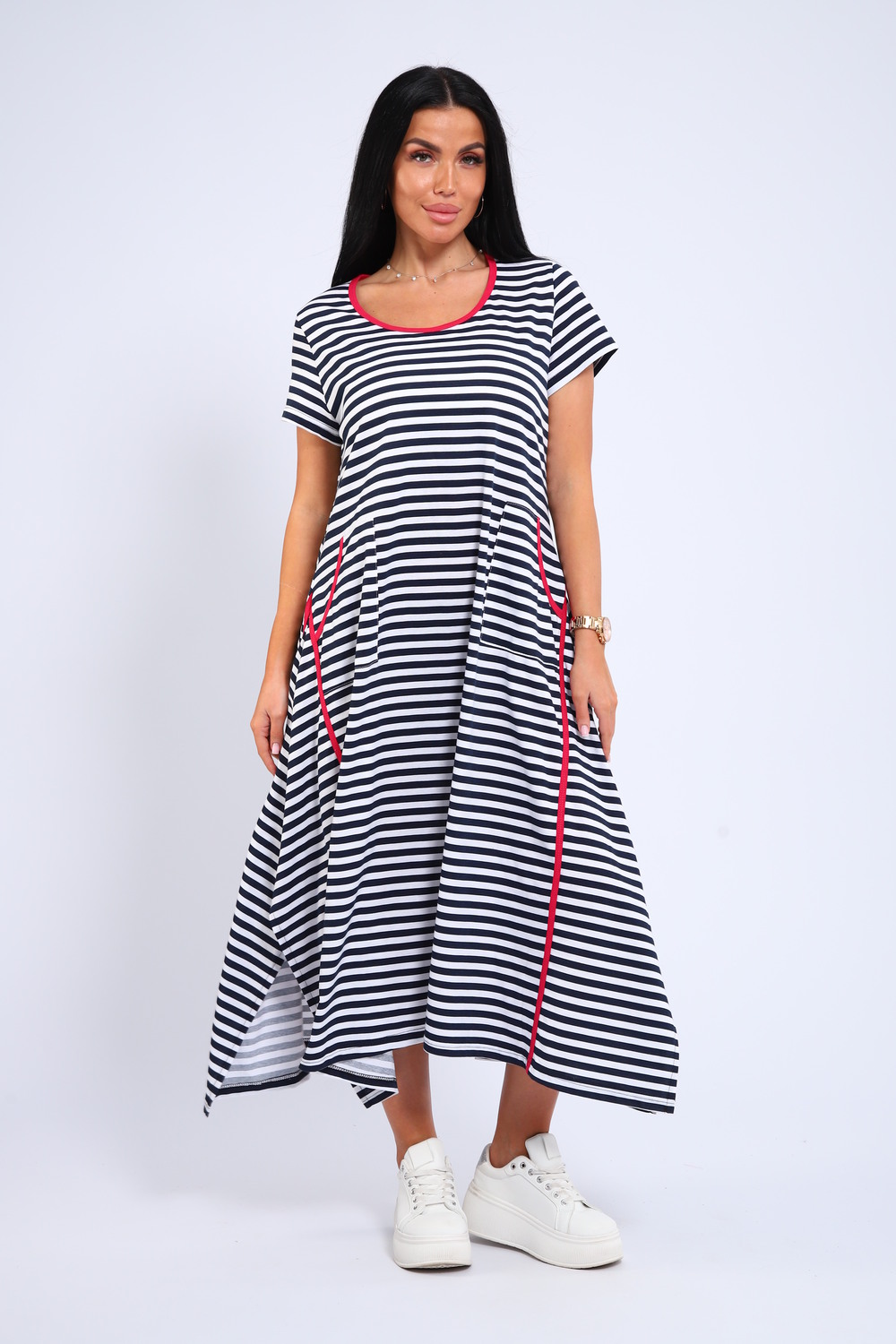 Погрузитесь в мир женственной элегантности с трикотажным платьем больших размеров. Изготовленное из дышащего натурального 100% хлопка, оно обеспечит комфорт и уют в любое время года. Модель оверсайз гарантирует свободу движений и скрывает недостатки. Женское платье с коротким рукавом подходит для повседневных прогулок летом. Лакончиный дизайн с фигурным исполнением низа подола клеш сделает ваш образ стильным и неповторимым. Домашний сарафан полуприлегающего силуэта прекрасный выбор не только в качестве повседневной одежды, но и для дома. Это классическое платье станет вашим любимым нарядом для работы и праздника. Женственное и красивое, оно подходит для торжества и вечернего выхода. Удлиненное домашнее платье будет прекрасно смотреться на беременных и полных дамах. Мягкая, приятная к телу ткань и женственный рисунок сделают нашу летнюю тунику любимой частью гардероба девушек с разным типом фигуры. Она подчеркнёт красоту и станет незаменимым спутником в любой ситуации. Цвет: полоса; Материал: кулирка пенье;кулирка пенье; Состав: хлопок 100%.