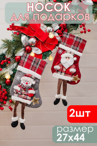 Главная фишка модели висячие ножки. Ножки добавляют динамики при подвешивании и создают игривый акцент на камине, поручне или ёлке. Верхний край снабжён петлёй для подвеса.
